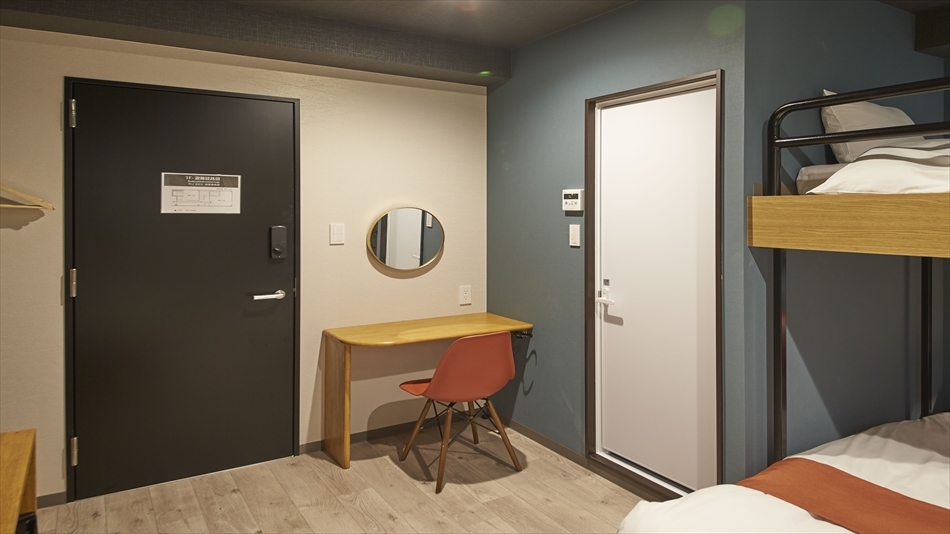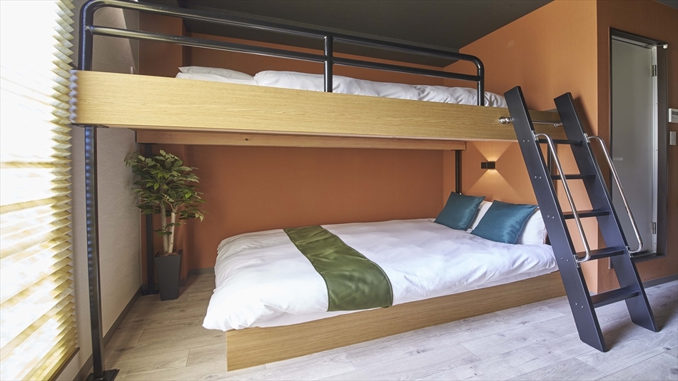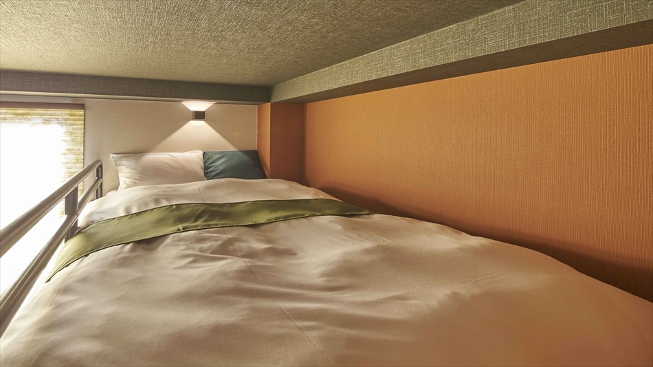 ロフトベッド(下段:ダブル/上段:シングル)/シングル布団1組/無料Wi-Fi/専有ユニットバス/ミニ冷蔵庫/電気ポット