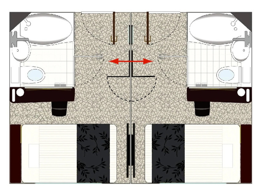 ベッド幅140cm(1ベッド)2室連結/広さ22平米(11平米×2室)/2室を内扉で繋ぐ客室