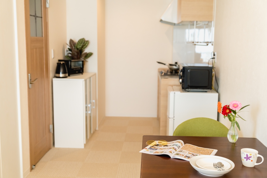 全室キッチン・電子レンジ・洗濯機完備、ご家族やご夫婦、カップルのご利用に最適!