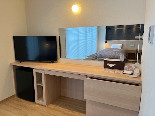 ・お部屋はユニットバス・フリーwi-fi・動画視聴可の40型TV・加湿機能付き空気清浄機完備・もちろん窓ありの通常グレードのシングルルームです。