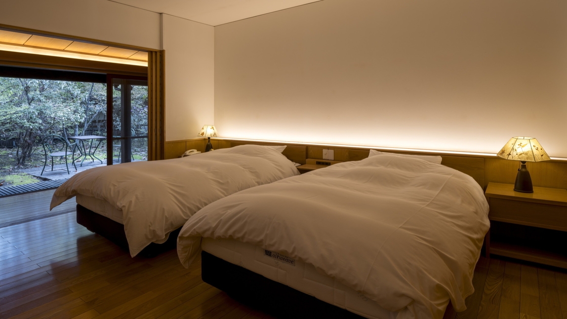 2024年7月にリニューアルをいたしました。 和室10畳+洋寝室10畳の二間続きの離れタイプです。※お食事はお食事処にてのご準備となります。