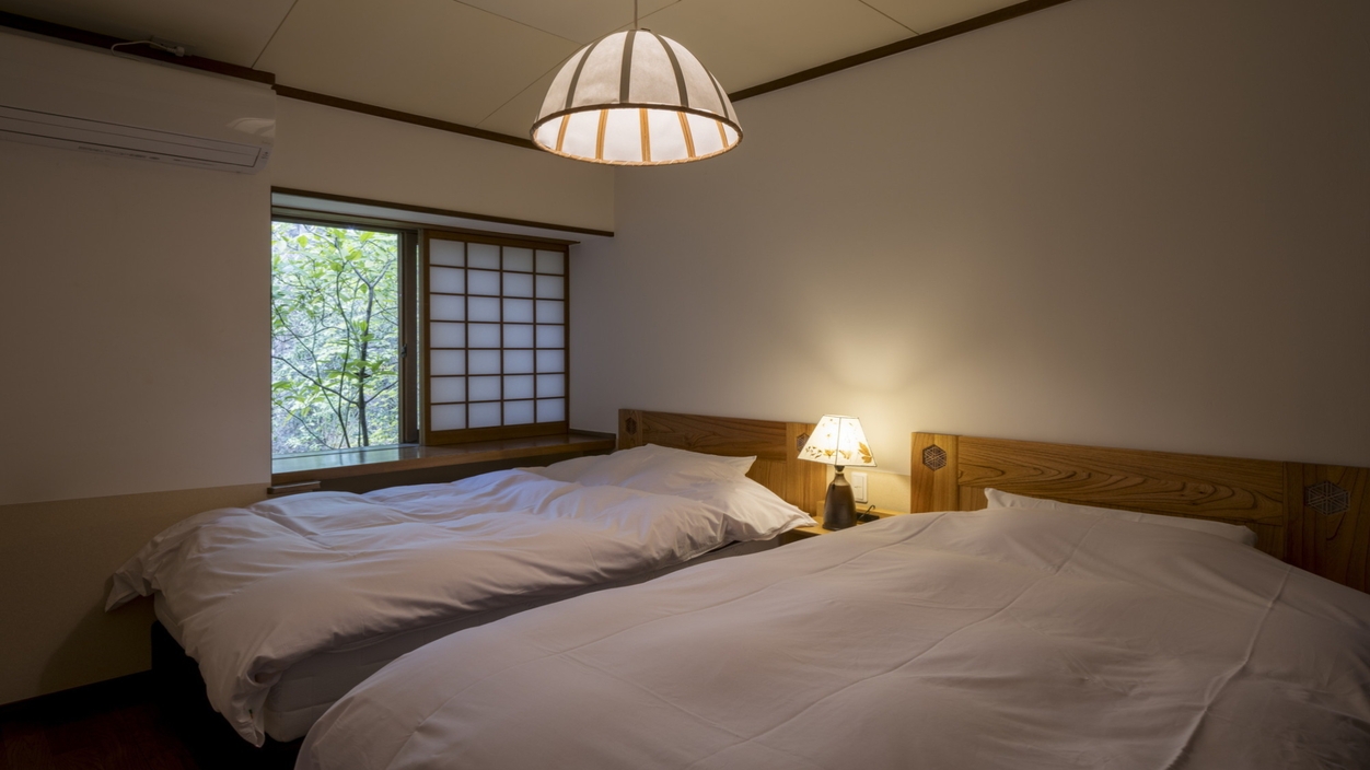 2024年2月にリニューアル。 和室10畳+洋寝室10畳の二間続きの離れタイプです。※お食事はお食事処にてのご準備となります。