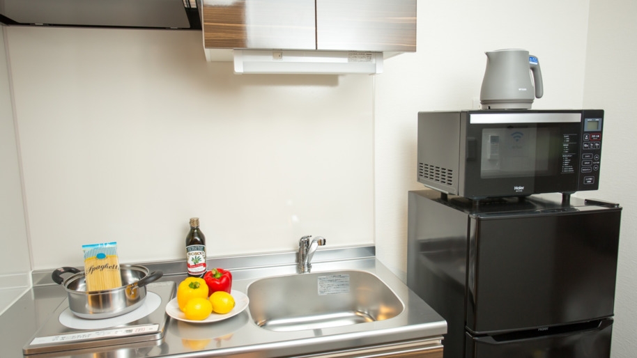全客室、家電充実のキッチン付&バス・トイレセパレートなので、長期出張や仮住まい、受験・就活での長期滞在などにおすすめです。