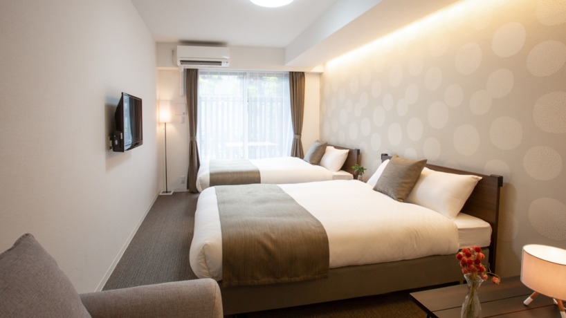 最大4名様/ダブルベッド2台をご用意/バス・トイレセパレート/独立洗面台・キッチン付