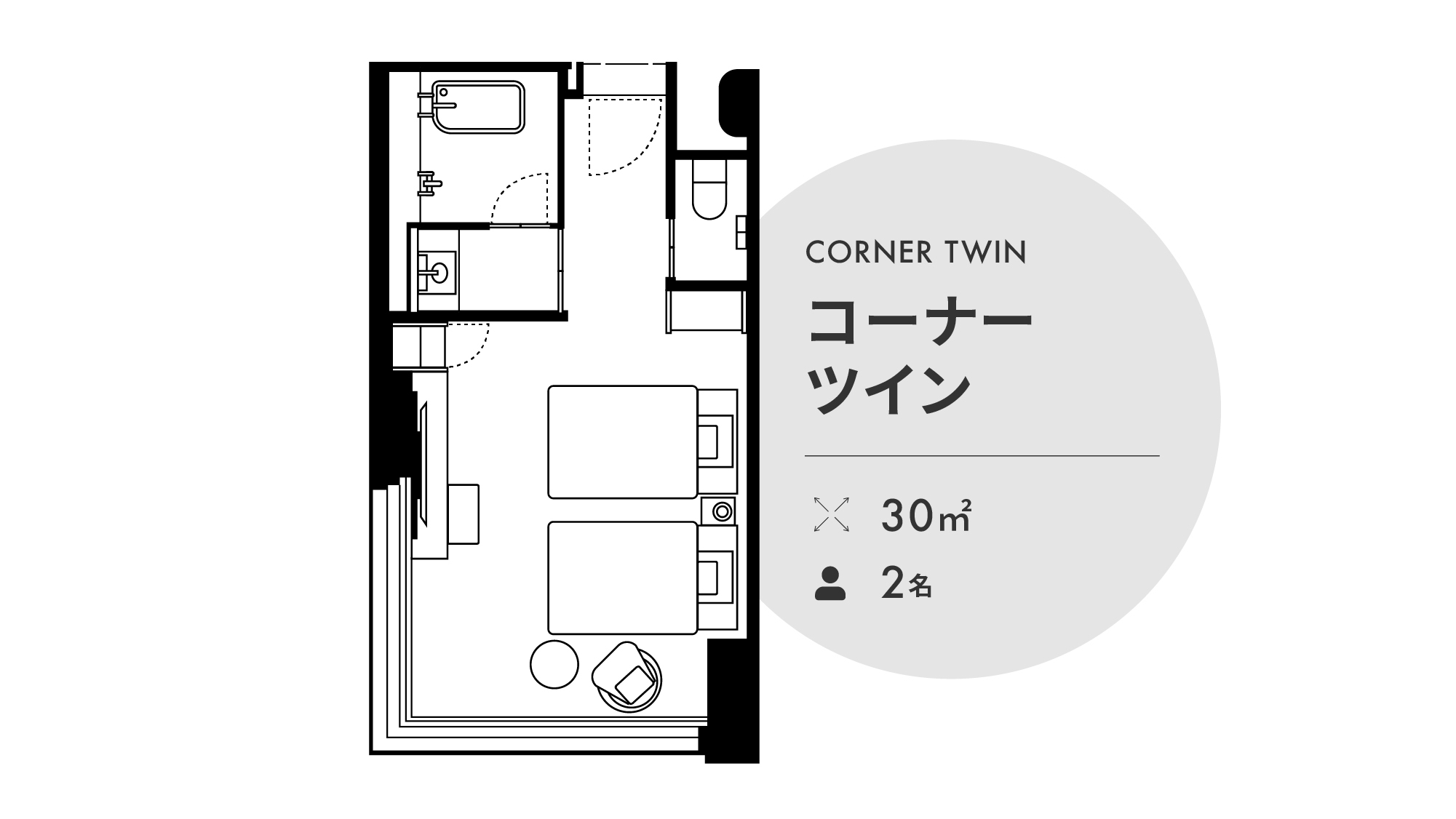 ◆ベッド幅115cm×2台◆シモンズ社製ベッド◆加湿機能付空気清浄機完備◆wi-Fi接続無料◆窓が2面にあるツインルーム