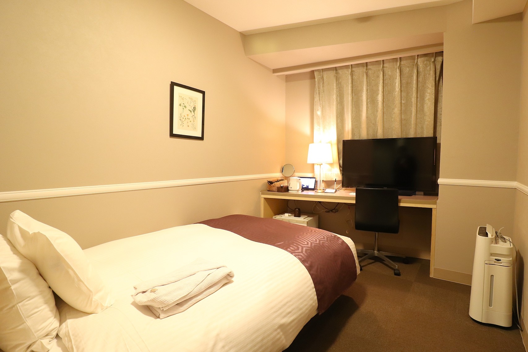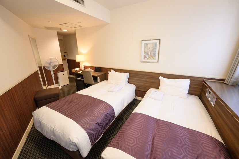 喫煙可/カジュアルツイン16平米/加湿機能付空気清浄機/シモンズベッド/人気の羽毛デュベスタイル/有線&WiFiインターネット