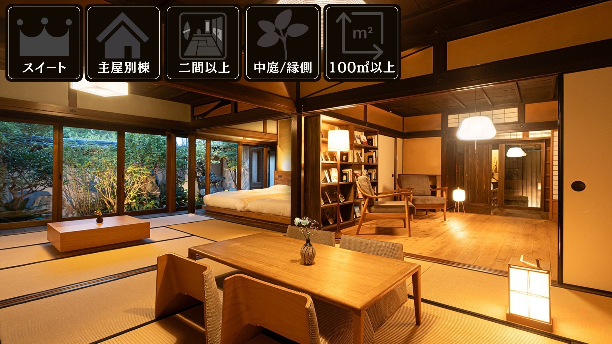 ・離れ:100㎡超の広々スイートでゆったりと