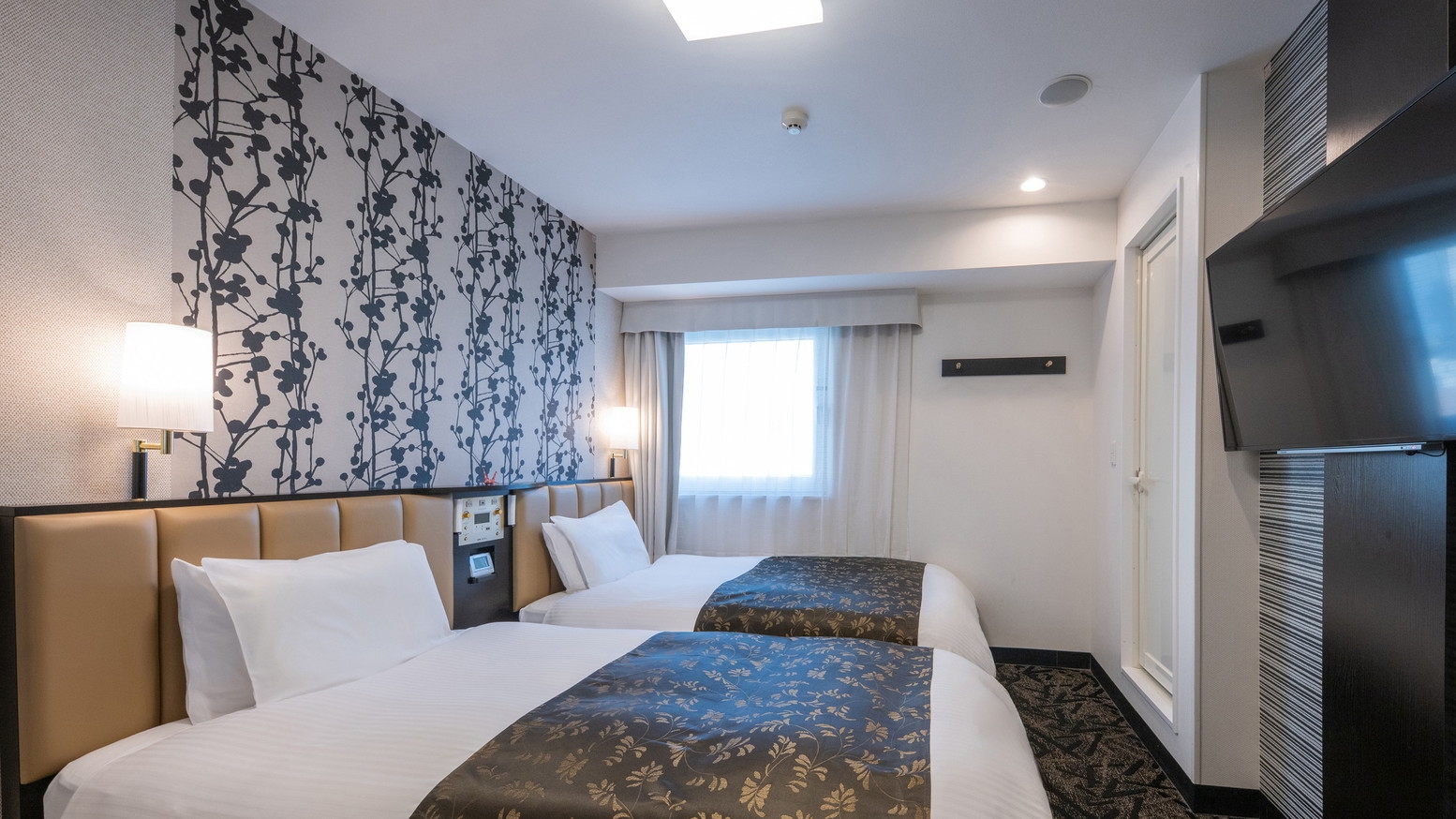 ■ベッド幅113cm×2台□やわらか高級羽毛布団(デュベ)完備□50型液晶テレビ完備□全客室空気清浄機完備□枕元コンセント・USBポート完備