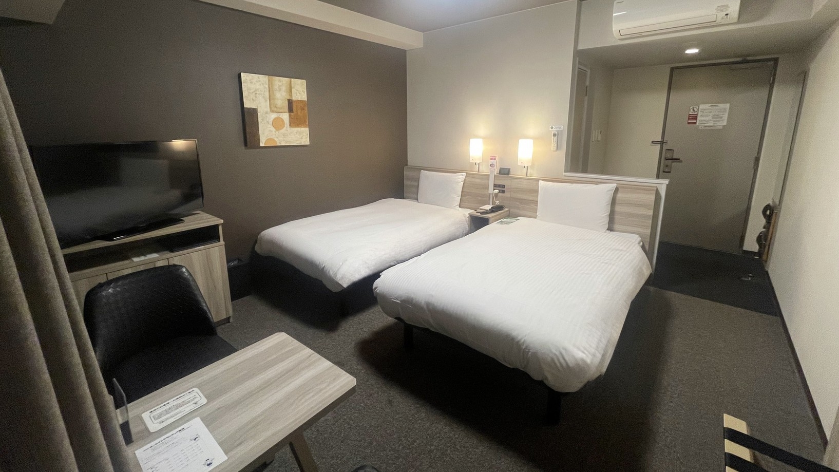客室内での喫煙はご遠慮ください。40型液晶TV、加湿機能付き空気清浄機設置。※2名利用時には1台のベッド(130cm幅)でのご利用となります。