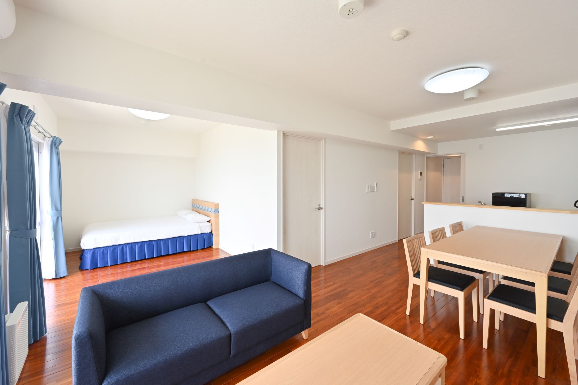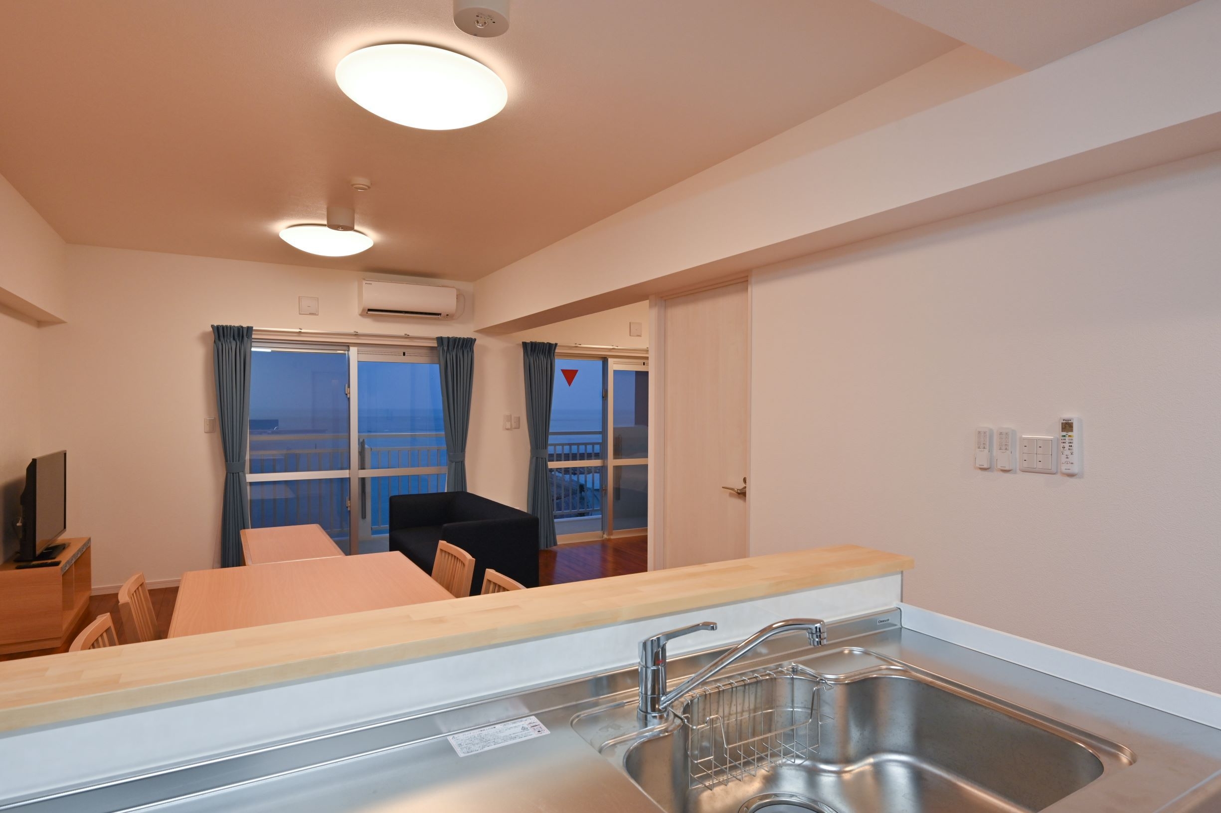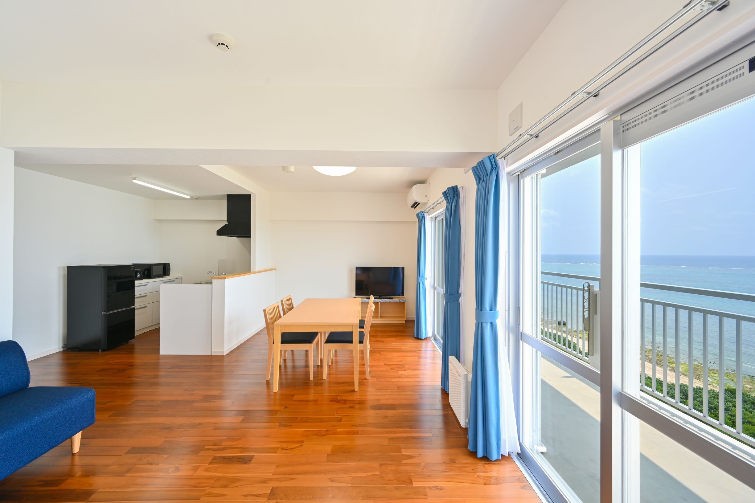 建物7〜10階・アパートメントタイプの宿泊施設。全室オーシャンフロントで抜群の眺望です。□-*-*-*-*-*-*-*-□当施設はセルフチェックインを導入しております。事前にチェックインのご案内をお送りいたしますので、ご予約時にメールアドレスのご入力をお願いいたします。*チェックイン時間について15:00〜18:00 セルフチェックイン or 対面チェックイン18:00以降 セルフチェックインのみ※18:00以降はスタッフ不在となるため、セルフチェックインのみとなりますのでご了承ください。※対面チェックインの時間でもセルフチェックインはご利用いただけます。□-*-*-*-*-*-*-*-□■設備(全室共通)無料Wi-Fi / 冷暖房完備 / 洗浄機付トイレ / 冷蔵庫 / 電子レンジ / 電気ケトル / 対面式システムキッチン / 洗濯機付(オーシャンフロントコーナーのみ乾燥機あり)/ 物干し竿(ベランダ)■アメニティ(追加・交換は10:00〜18:00の間のみ、1階フロントにて対応)バスタオル / フェイスタオル / シャンプー / リンス / ボディソープ / 洗顔&ハンドソープ / ボディタオル / 歯ブラシ / スリッパ■滞在中の清掃について滞在中の清掃は行っておりません。客室内に掃除機・クイックルワイパーを備え付けておりますのでご利用ください。■駐車場について1室につき1台まで無料でご利用いただけます※駐車場所は敷地内東側・オレンジラインで囲まれたスペースのみです。 数字が記載されている箇所は賃貸契約者専用となりますので駐車されないようご注意お願いいたします。■注意事項・全室禁煙・館内内線なし・ペットご利用不可※6階以下は賃貸住宅のため、夜間等の騒音はご配慮ください。※チェックイン前後・事前郵送含めお荷物のお預かりは承っておりません。※追加の貸出品はご用意がございません。お部屋に備え付けの備品がすべてとなります。※調味料等はご用意がございません。※追加の寝具(布団・エキストラベッド等)はございません。寝具が人数分必要な場合はベッド数に合わせてご予約ください。