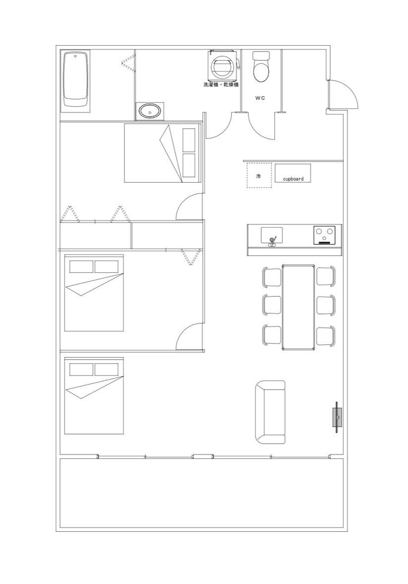 1名様から6名様まで同料金でご利用可能 ダブルベッド3台のお部屋