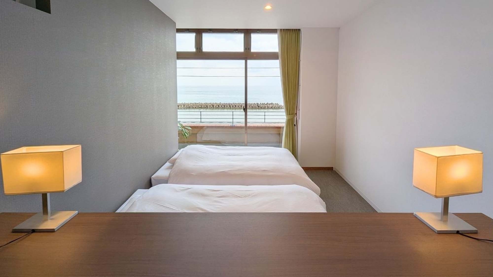 2階和モダンレトロ 海が見える広々和洋室/60平米/ベッド2台(セミダブル)/布団2組/階段のみ