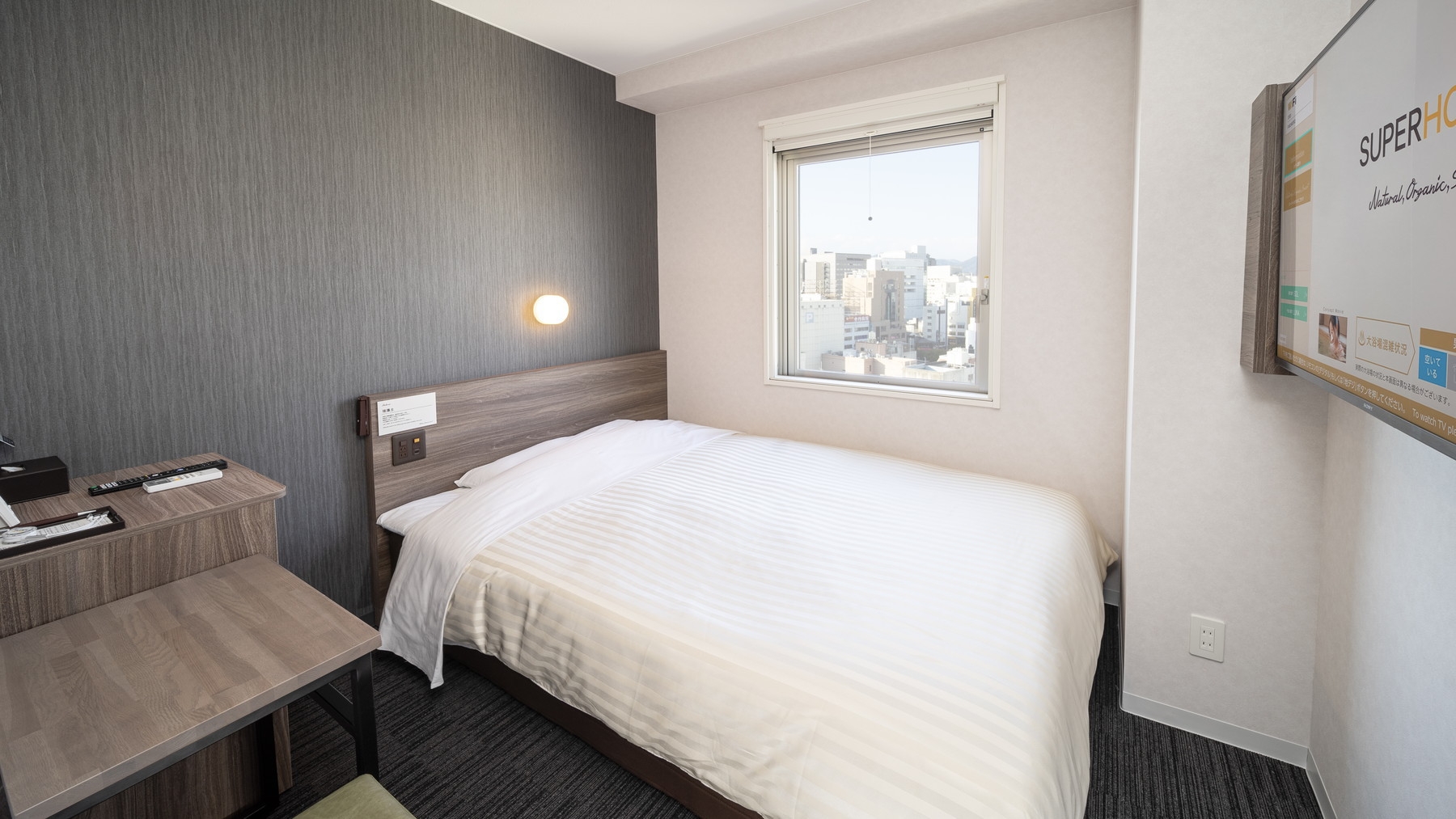 スーパーホテルで最もスタンダードなお部屋である【スタンダードルーム】です。150cm幅のダブルサイズのワイドベッドでぐっすりお休み下さい。