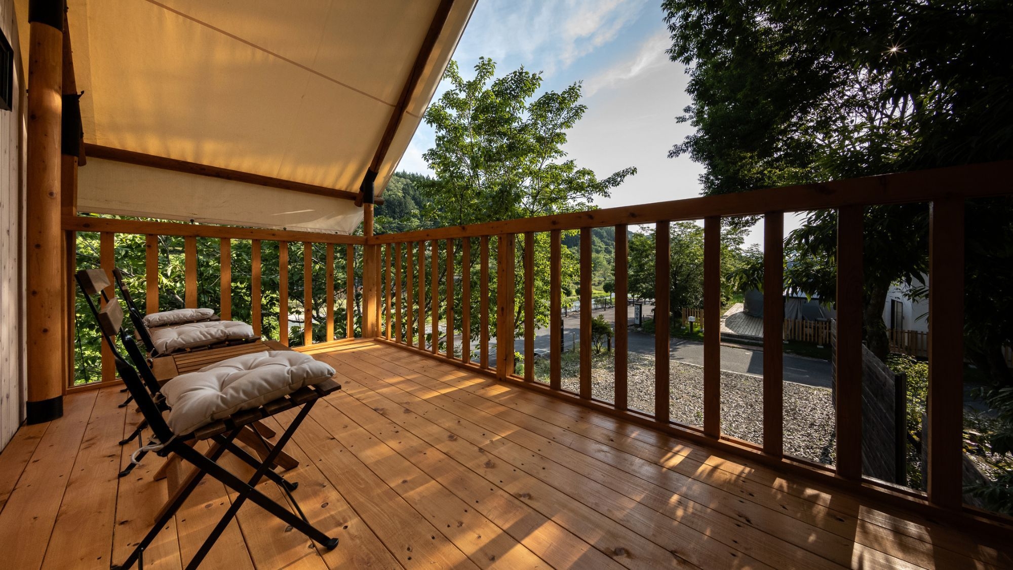 【禁煙】47平米ある最大8名まで利用可能なADRIA社の最上級グランピングテント★Wi-Fi接続無料・トイレ・シャワールーム付・冷蔵庫有