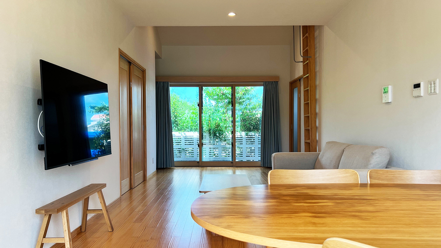広いリビングに洗い場付きのお風呂。無料の洗濯機とガス乾燥機あり。寝室2室:ツイン×2