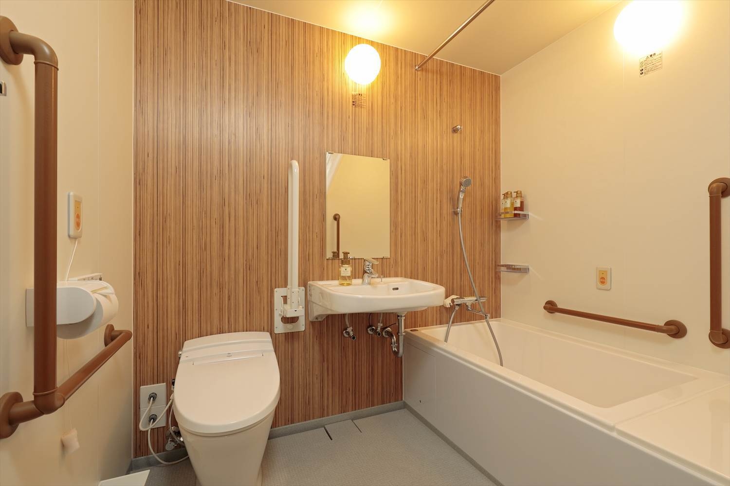 空気清浄機「Aura Air」やこだわりの寝具に加え、手すりや広めの動線など、バリアフリー対応で誰もが快適にくつろげるお部屋です。