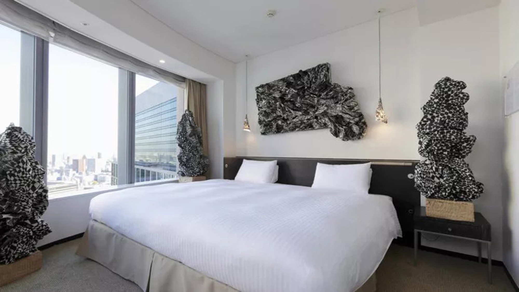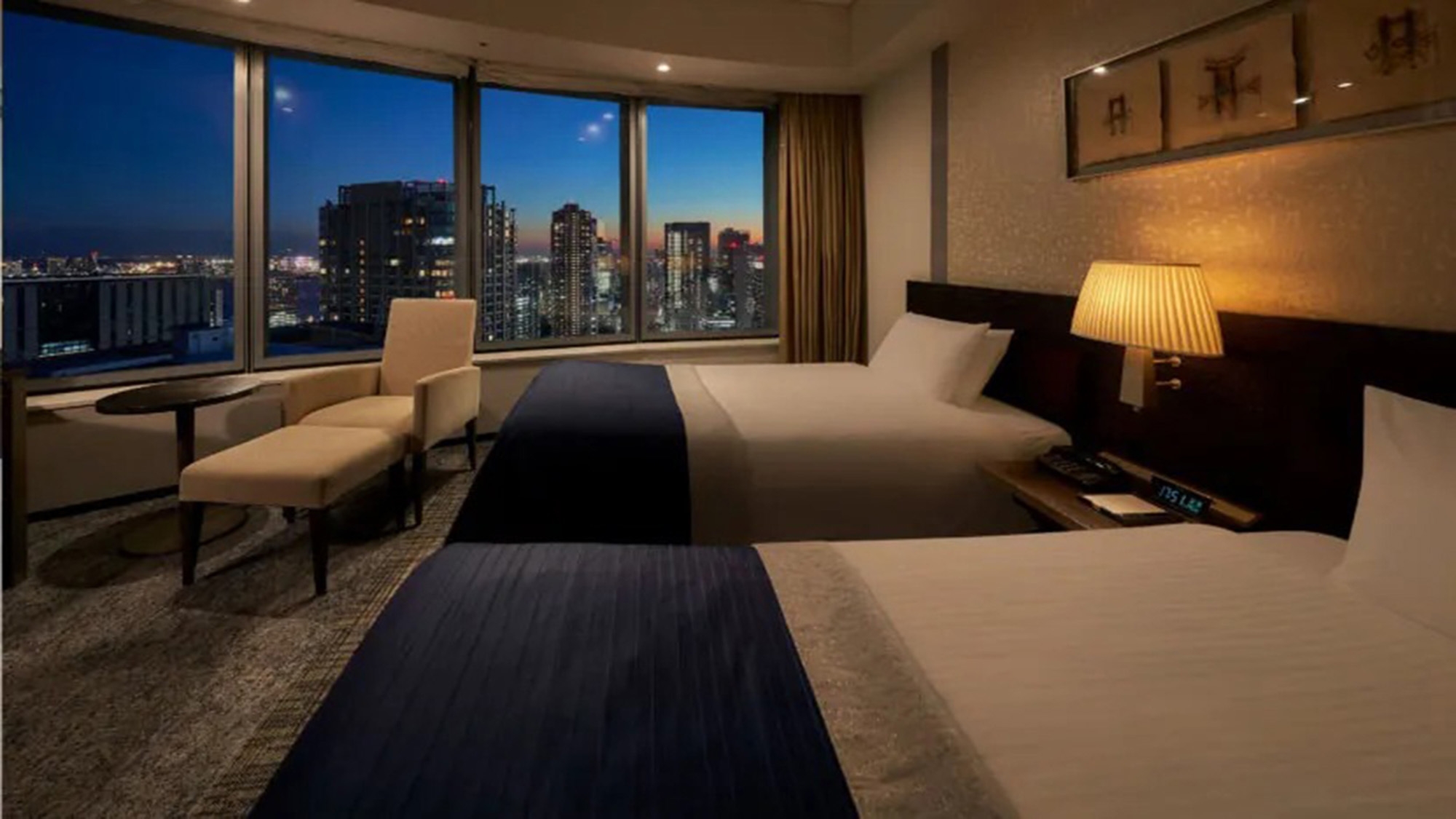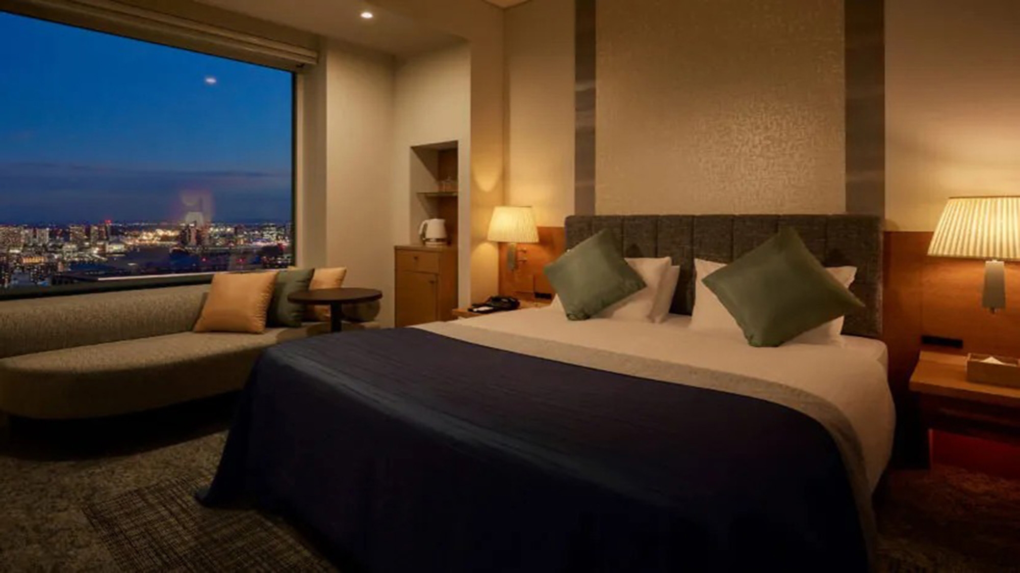 19平米(眺望はお楽しみ頂けません)、高速インターネット、シモンズ社製ポケットコイル式ベッド(1400mm×1950mm)、全室26階以上