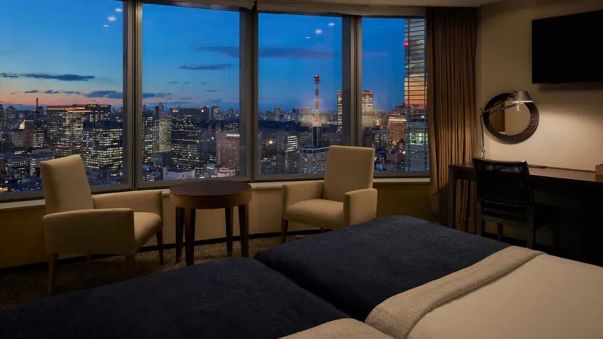 東京タワービュー、22平米、シモンズ社製ポケットコイル式ベッド(1600mm×1950mm)、自然原料を使用したTHANN(タン)のアメニティ、全室26階以上