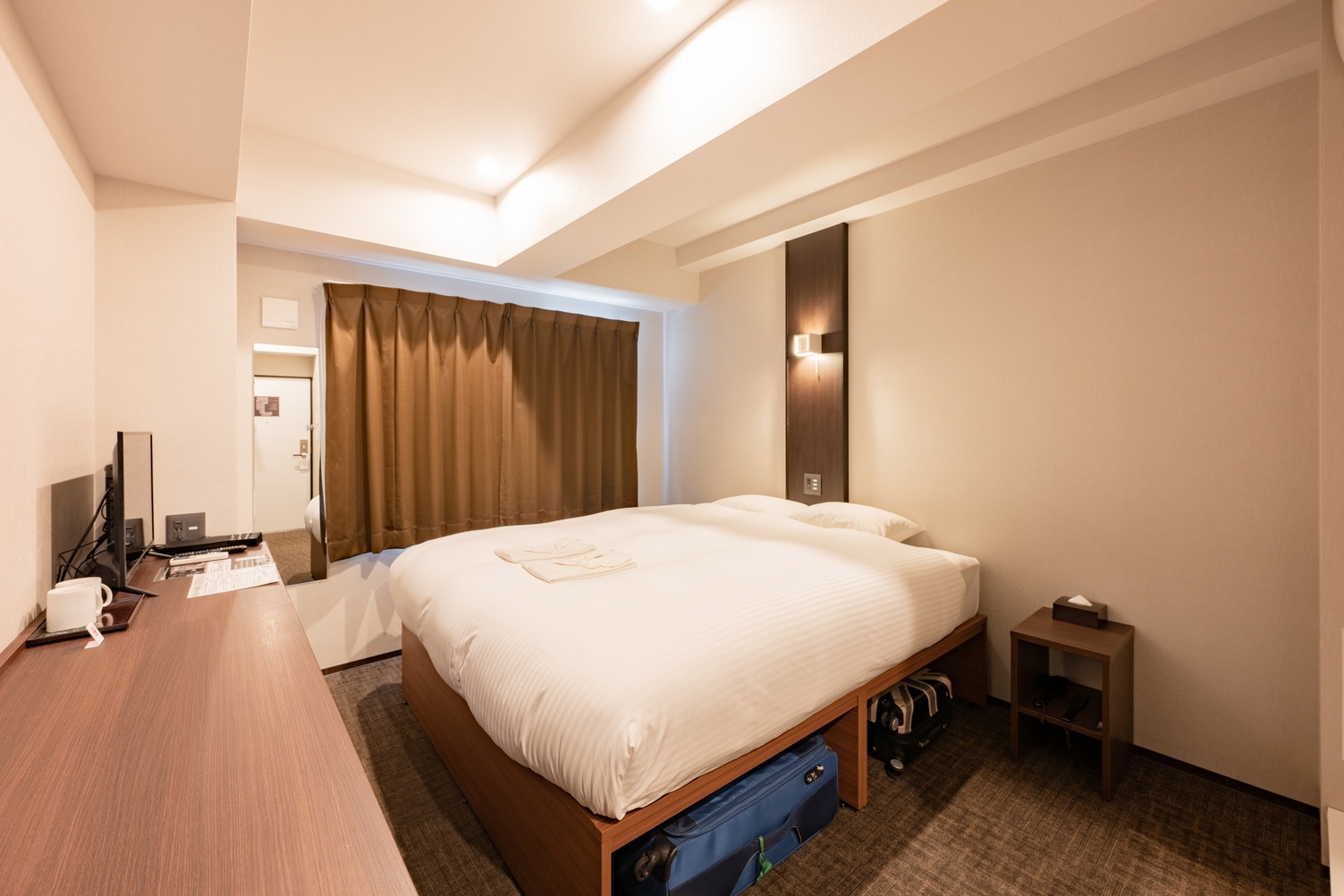15平米/180cm幅キングベッド1台/テレワーク可能なデスク/空気清浄機/ユニットバス・ウォシュレット/無料高速Wi-Fi/アメニティ完備