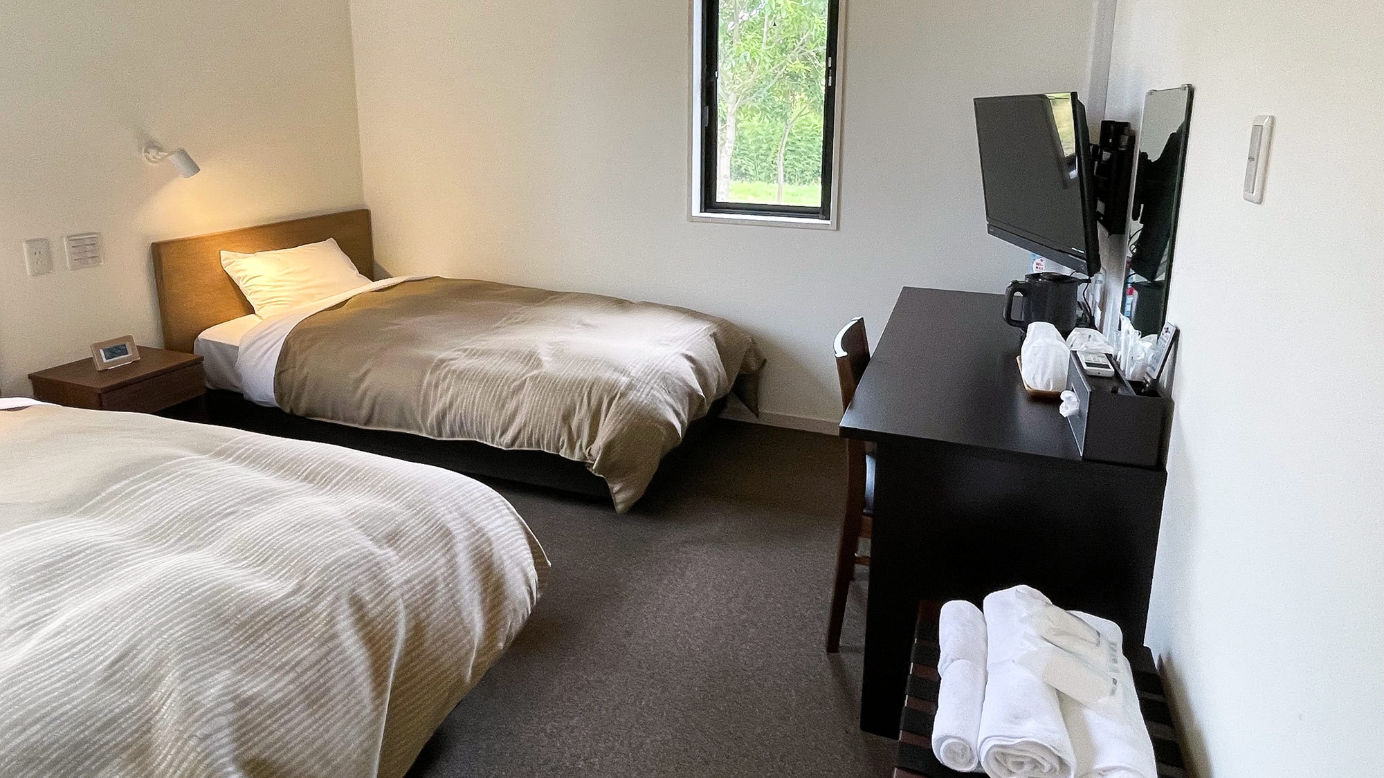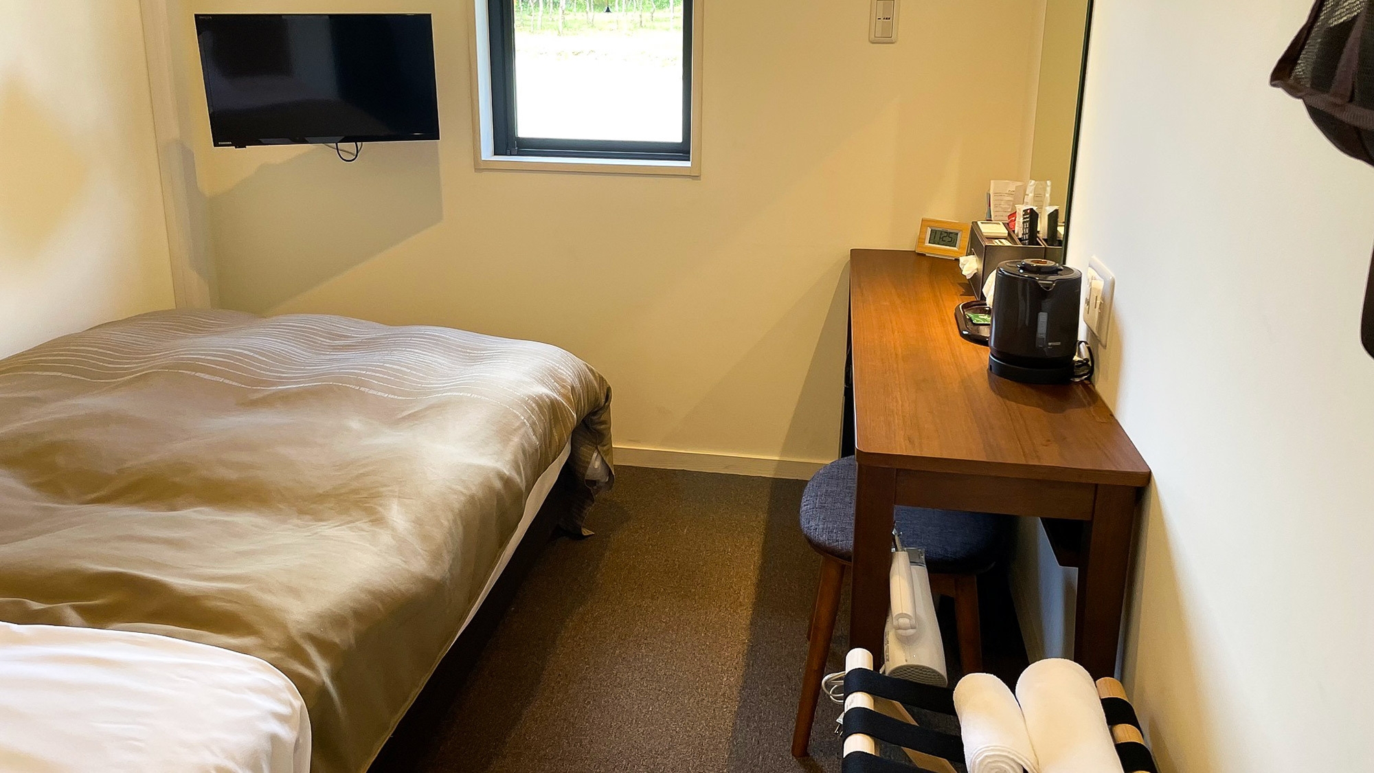 2名様までご利用可能なシンプルなセミダブルルーム。ユニットバス完備で使い勝手抜群。窓から見えるクヌギ林に心癒される滞在を。ビジネス利用も大歓迎