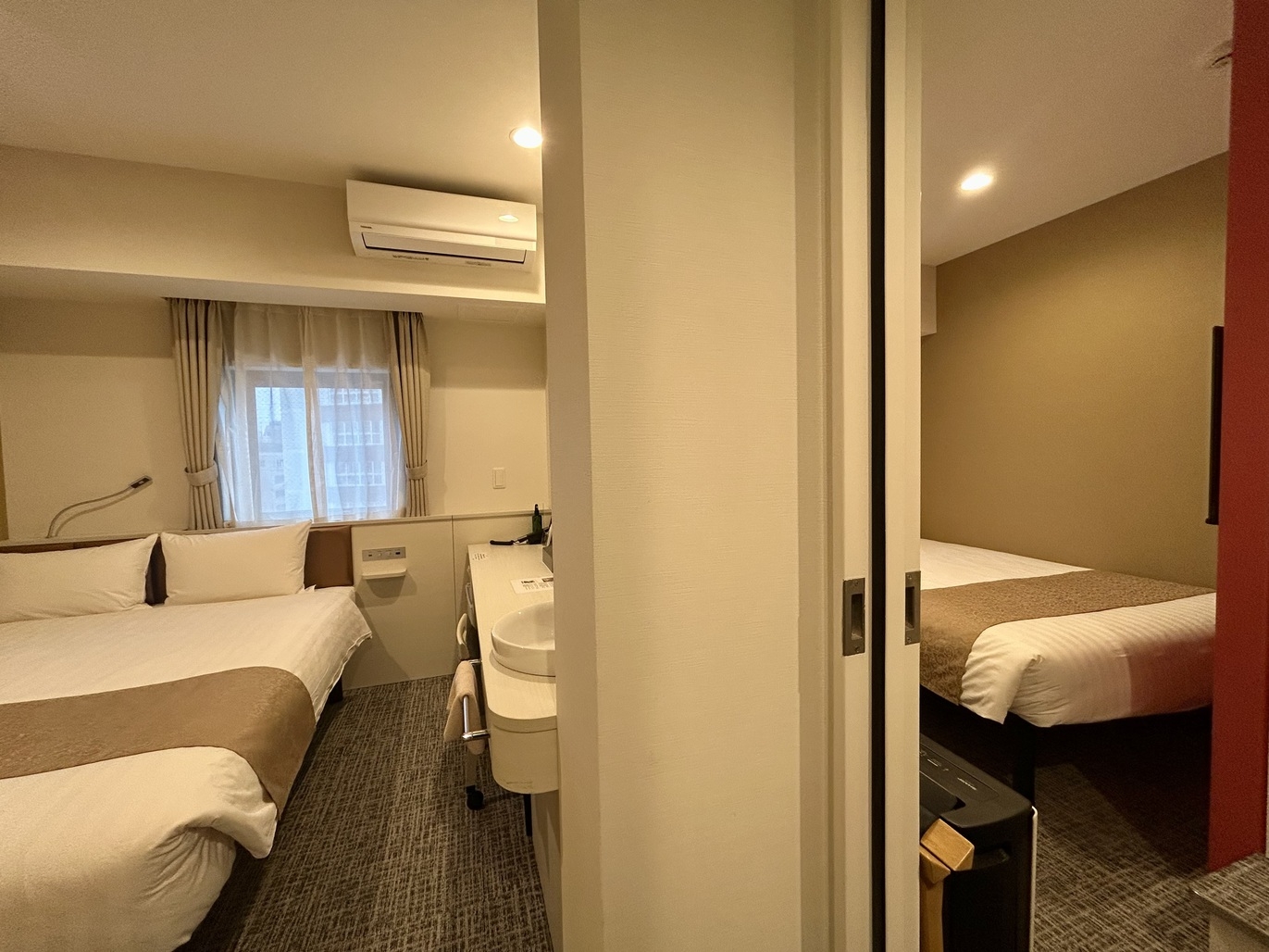 バスタブ付&シャワーのダブルのコネクティング Wi-Fi無料 禁煙ルーム