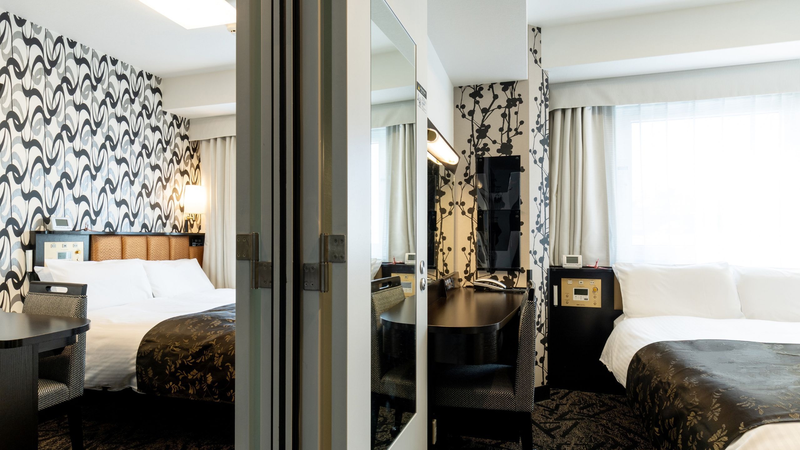 シングル(ベッド1台)2室連結/広さ20平米(10平米×2部屋)/2室を内扉で繋ぐ客室