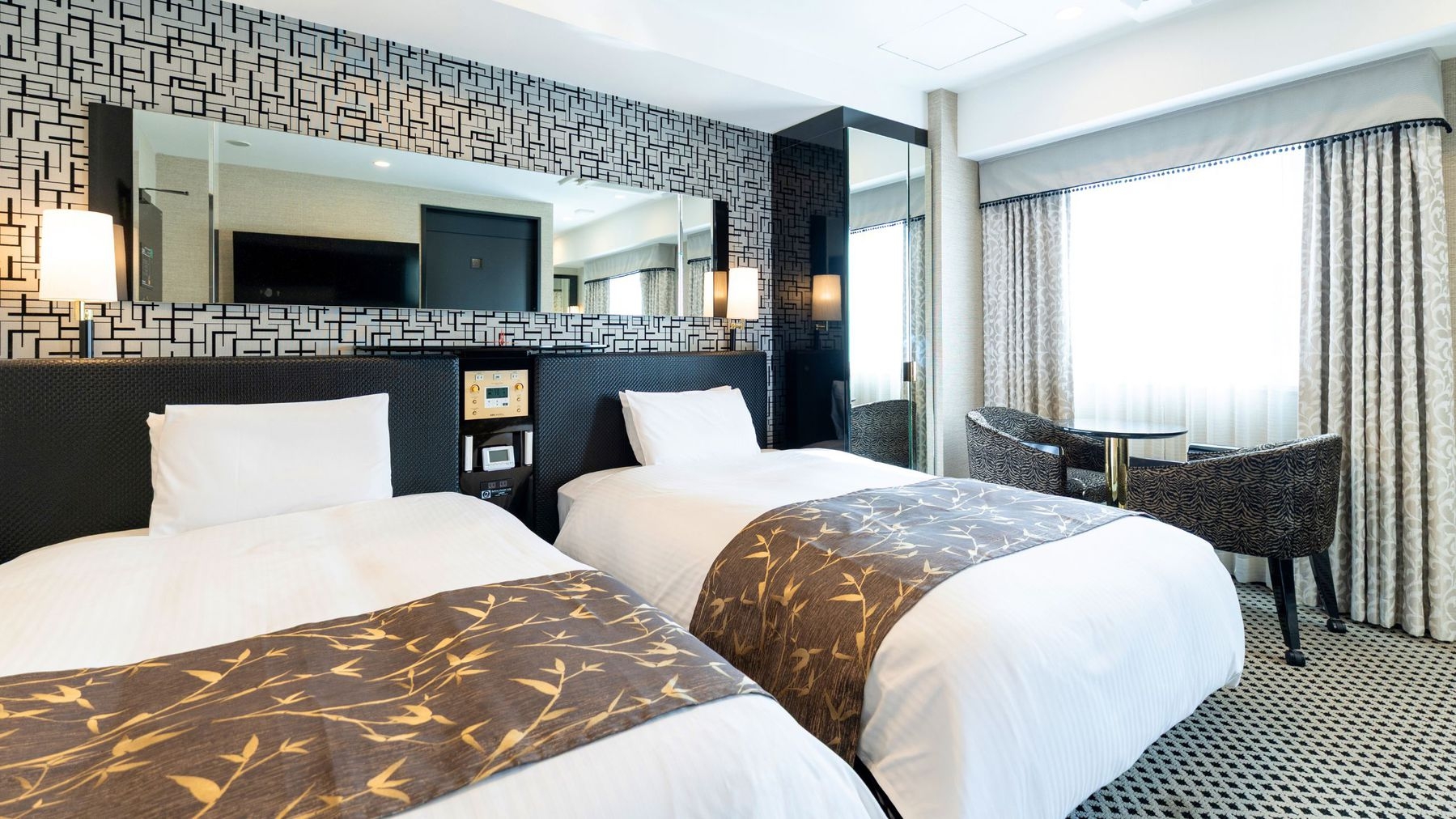 ■ベッド幅120cm×2台■有線LAN・Wi-Fi接続無料■65型大型液晶TV■ミラーリング機能搭載■枕元コンセント■ナノイーX搭載空調■暖房機能付温水洗浄便座