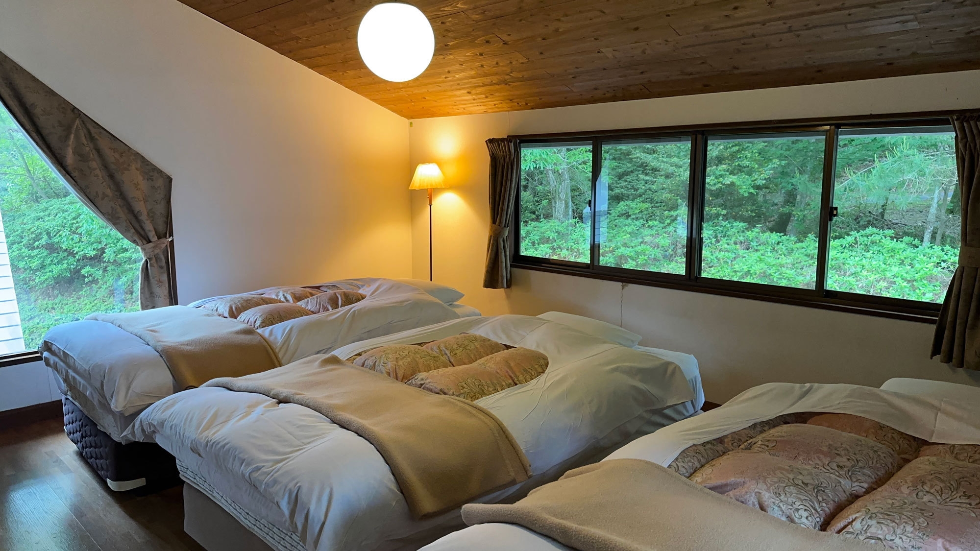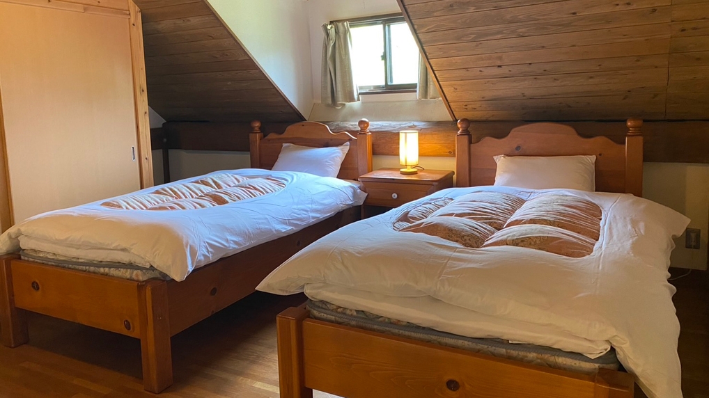 1棟貸切でご利用いただけます。ご家族やカップルなど若い方に人気のお部屋タイプです。3名以上の場合は、寝具はお布団になります。※wifiなし