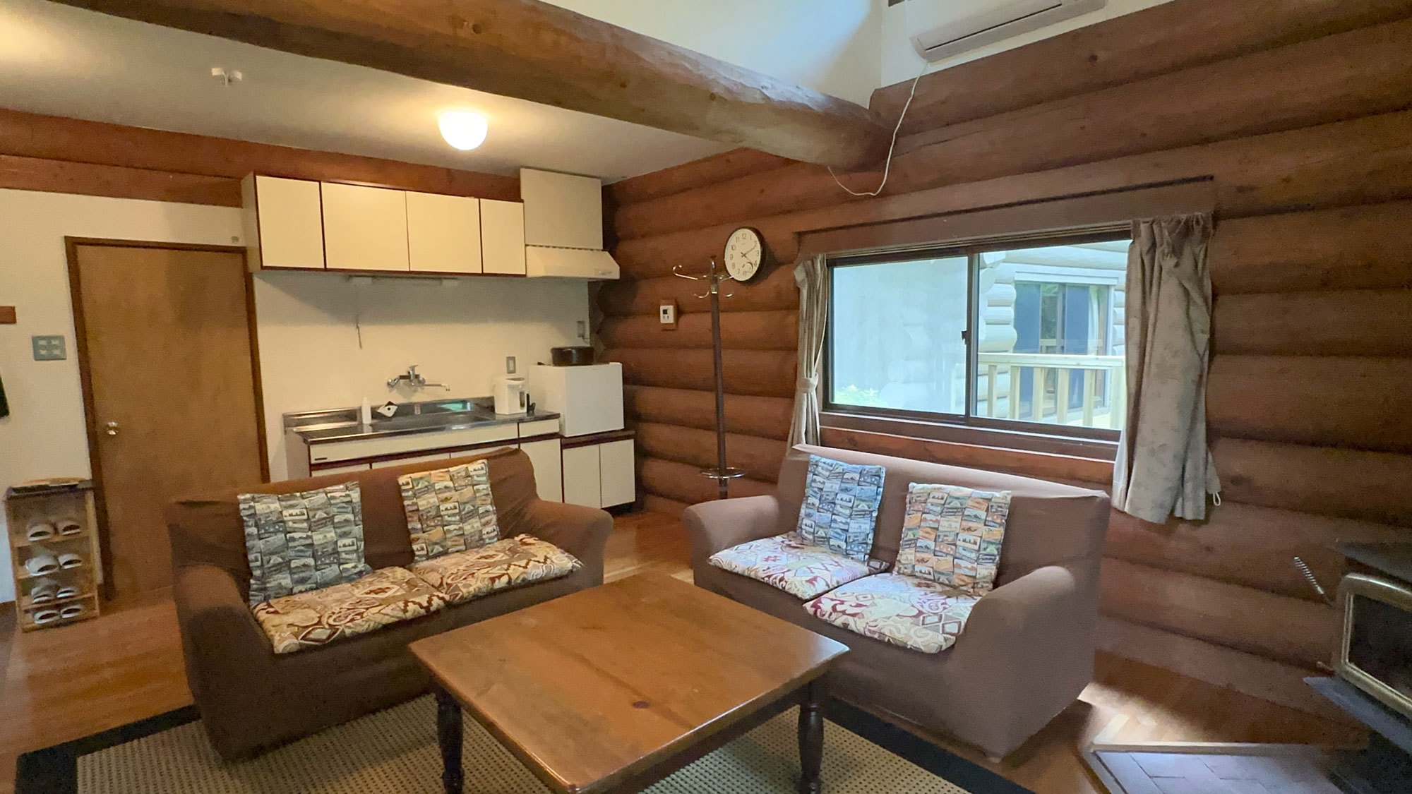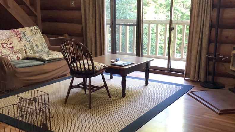 ペット同伴OKのログハウス風コテージになります。愛犬と一緒にごゆっくりお寛ぎください。3名以上の場合は、寝具はお布団になります。※wifiなし