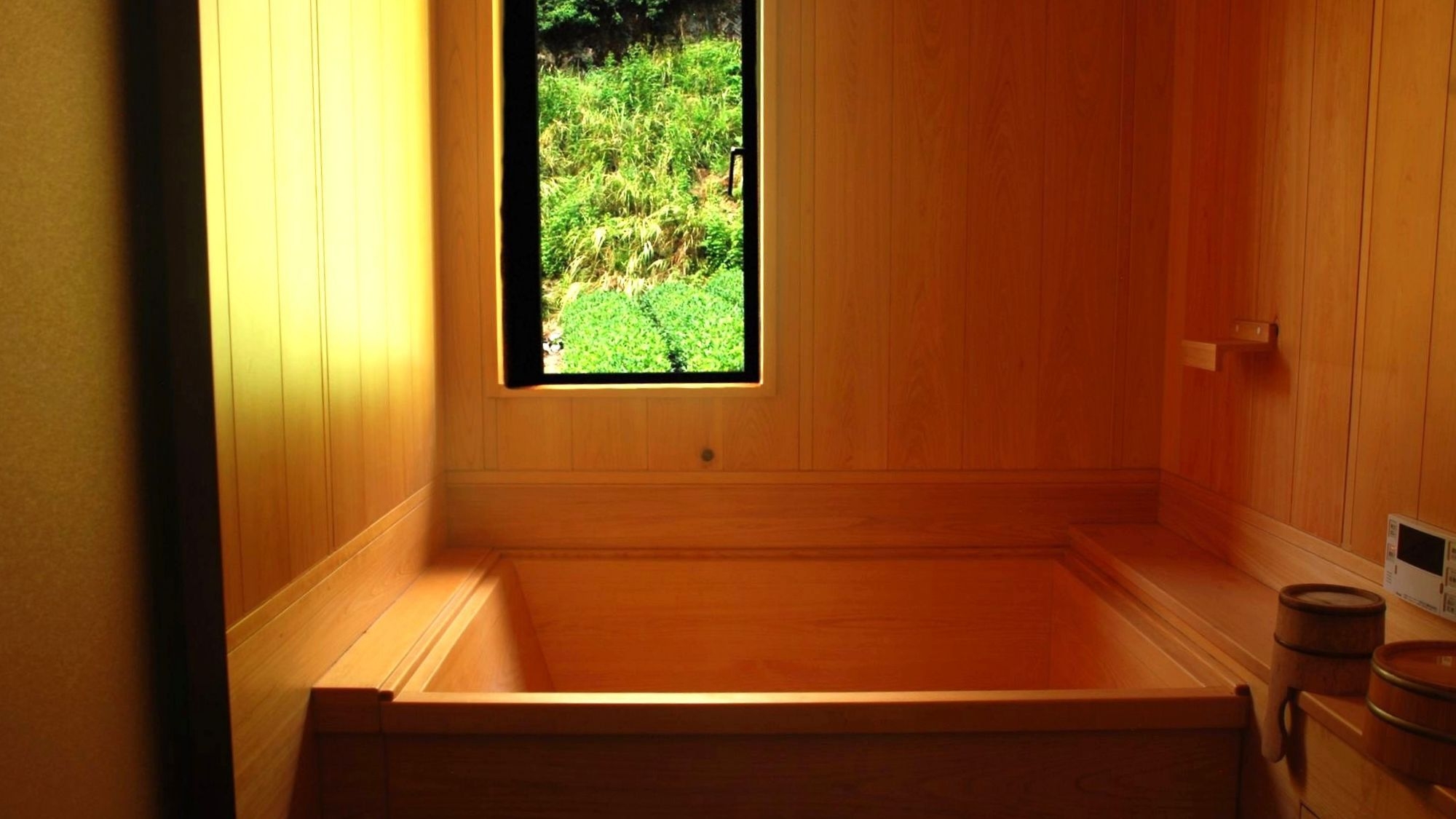小窓から自然を眺めながら湯舟につかり、癒しのひとときをお過ごしいただけます。