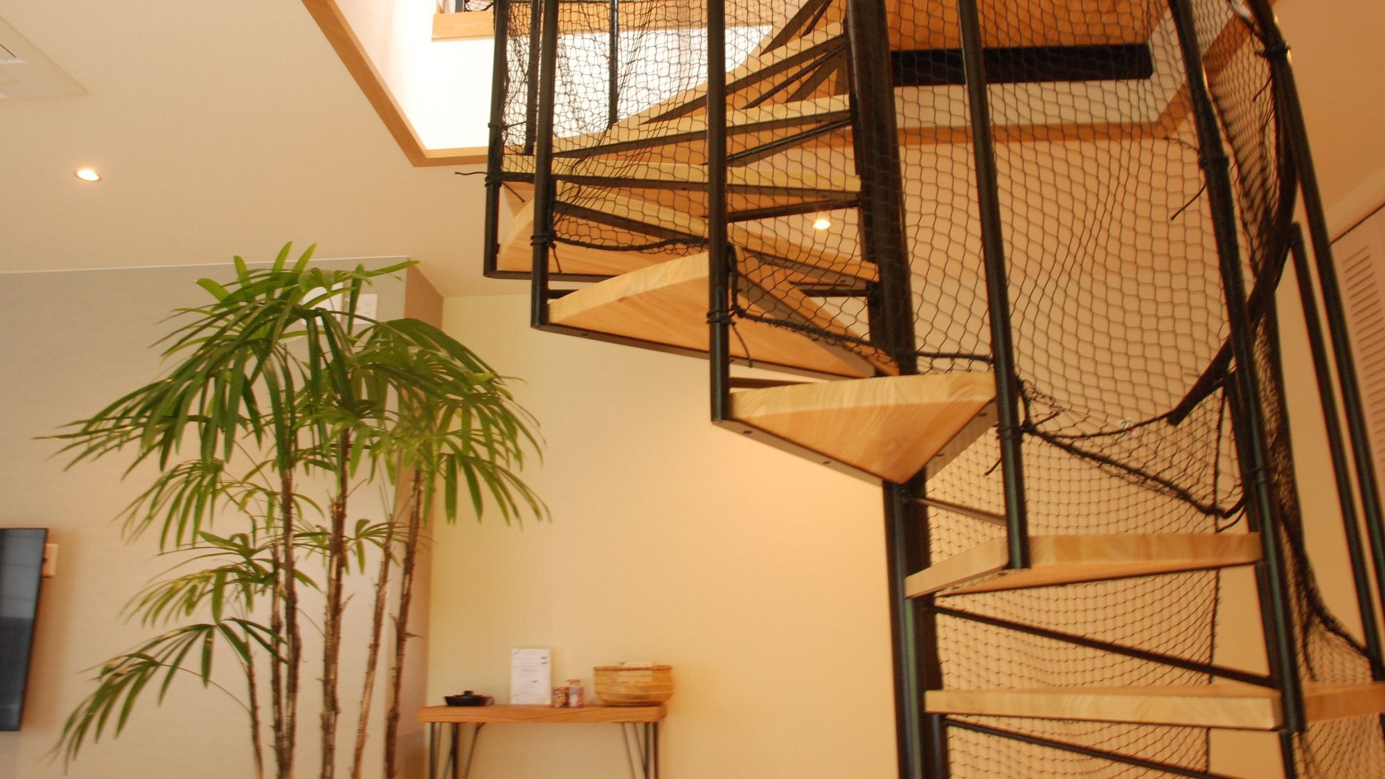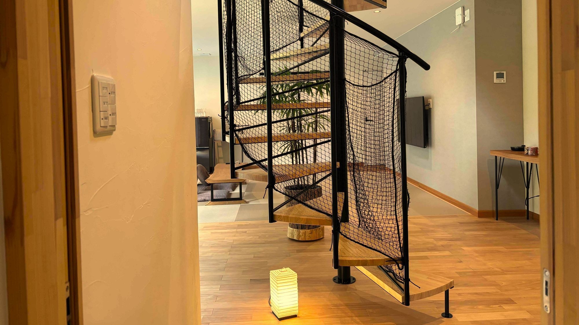 木の葉に揺れる優しい光に包まれたようなメゾネットタイプの和洋室。乳幼児のお子様がご宿泊の際はらせん階段に安全ネットを設置。三世代のご宿泊やグループ旅行にも!