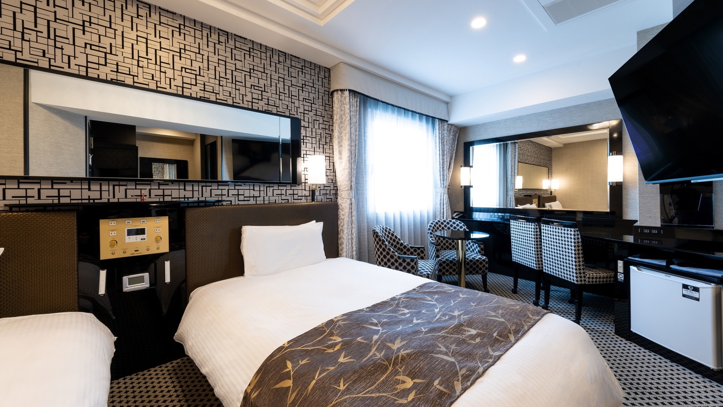 Wi-Fi接続無料、50型液晶テレビ、暖房機能付き温水洗浄便座、新型空調室内機(高濃度ナノイーX機能付)、HDMI接続可、枕元集中コントローラー等