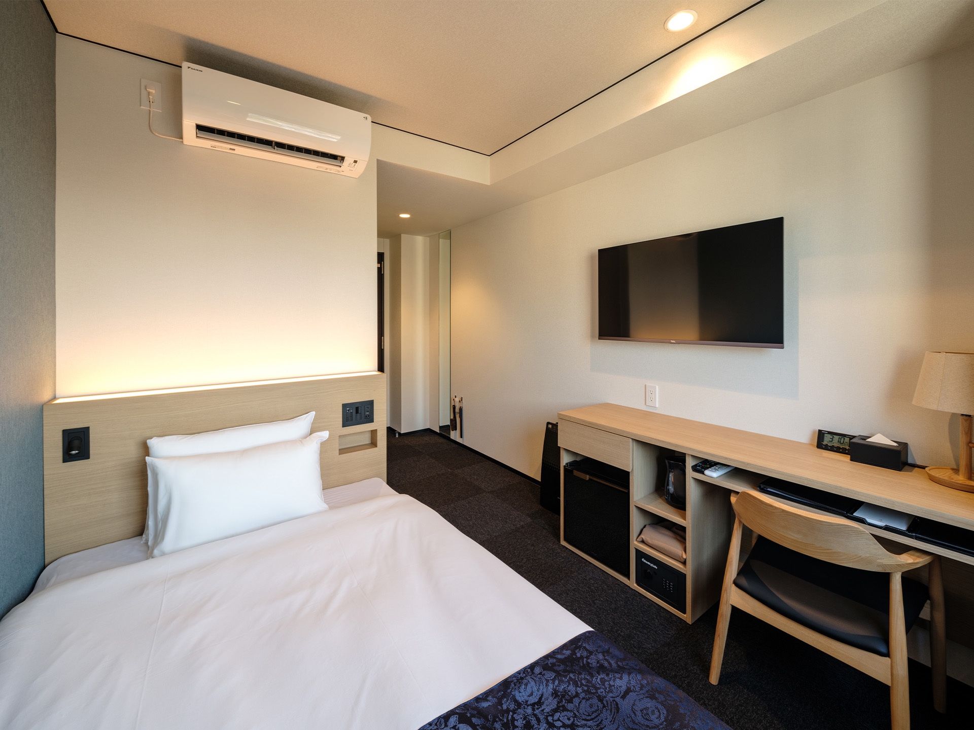 ベッド幅120cm/13平米【電子タバコのみ可】ナチュラルな雰囲気の客室です。デスクワークもできる広々デスクあり。※2名利用時もベッドは1台となります。