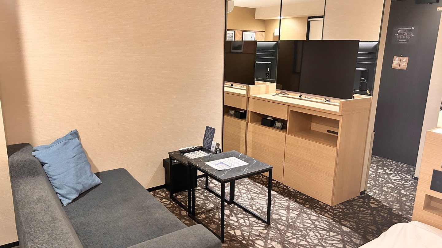 ベッド幅160cm/19平米【禁煙】コンパクトながらもソファーセットを備えたお部屋です。座り心地にこだわったソファでゆっくりとお寛ぎください。