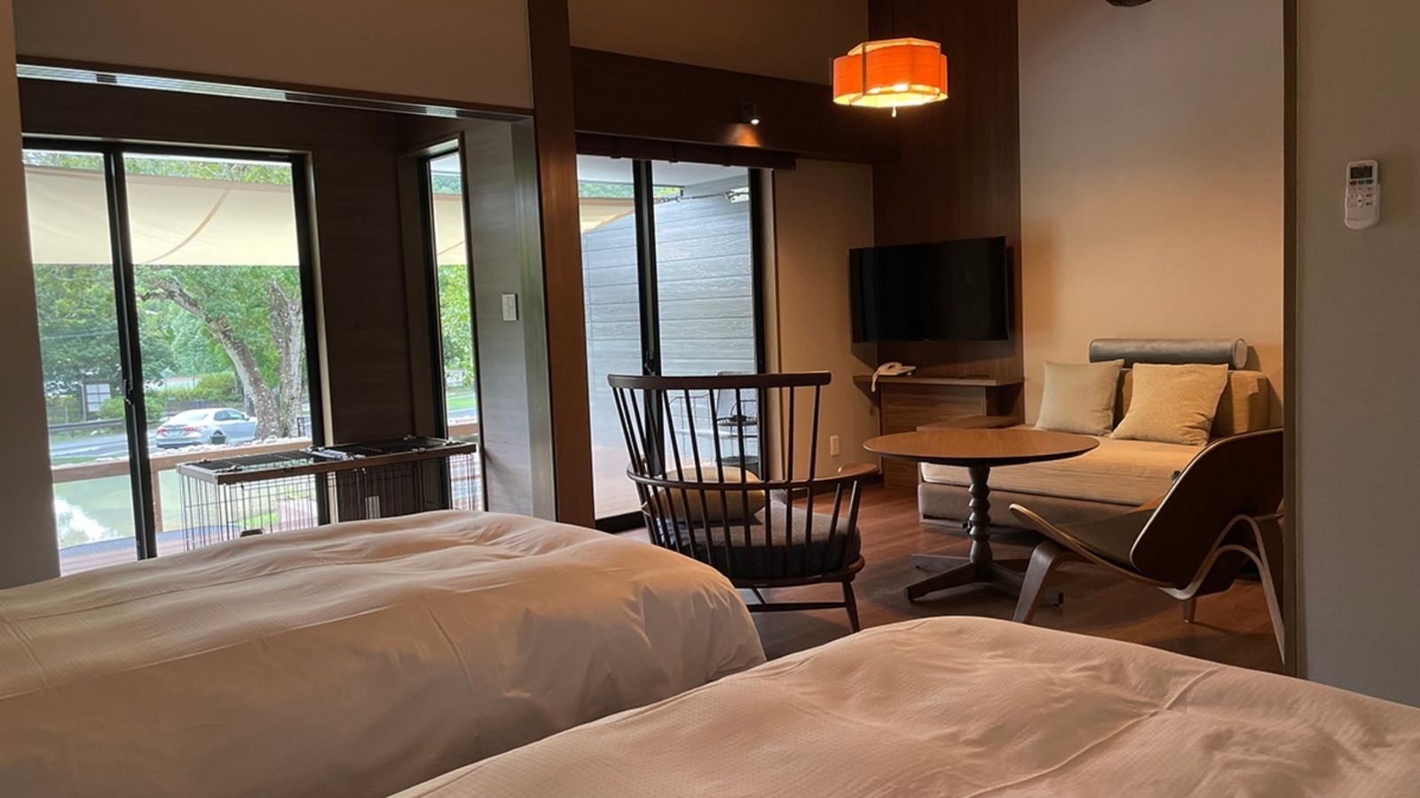 ・リラクゼーションスイート、ユニバーサルスイート、フォレストDLX(メゾネット)は1室2頭まで25kg以下のみご宿泊可能