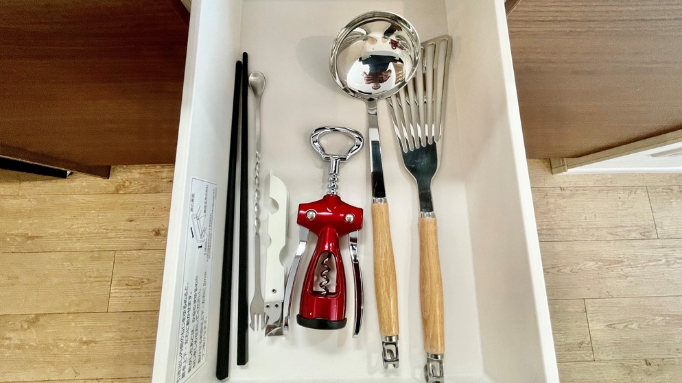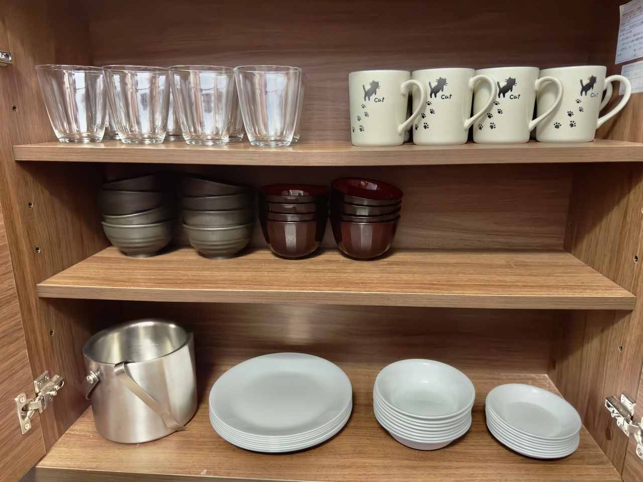 調理器具一式、食器類一式、電子レンジ、電気ポット、冷蔵庫、TV、無料WiFi、洗濯機、衣類乾燥機、ヘアドライヤー、炊飯器