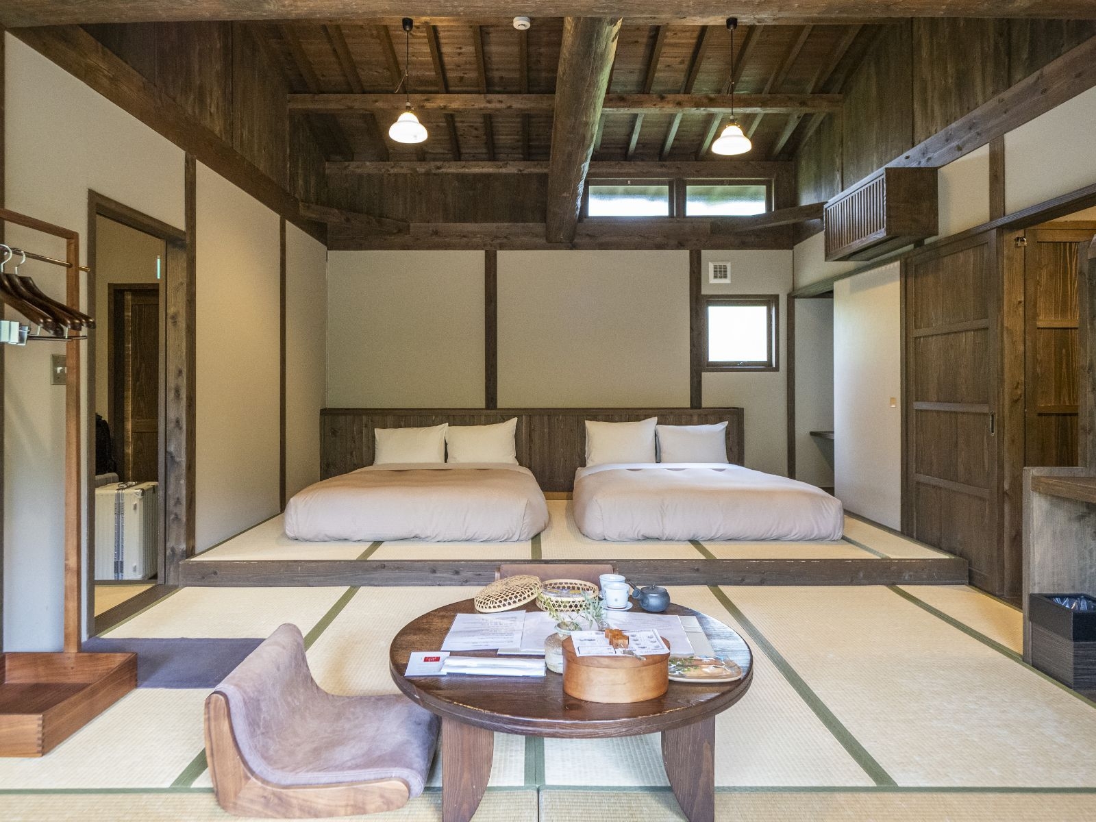 2連泊限定のご予約で2泊目のご宿泊代が40%割引!(お食事代を除く)※表示料金は、2泊分のご料金(割引済)を1泊換算した金額となります。■お食事■一日目—Soukatei—〜ドレスコード Dress code〜1、ジャケット着用『スマートカジュアル』2、お子様連れのご入店はお断りさせていただいております。*13歳以上よりご利用いただけます。〜ご案内 Information〜・お料理は18,150円(税・サービス料込み)のコースでございます。・アレルギーや食材のお好みなどがございましたら備考欄にご記入くださいませ。・朝食は『料匠虎白』にてご提供いたします。二日目—料匠虎白—・お料理は18,000円のコースでございます。 ■ご宿泊■【懐かしく慕わしく】豊かな自然と実りの里、宮若に小さな旅館をひらきました。宮若という地をありのままの季節と風景をそのまま再現。止まる時間、遡るひととき、思い出す心の居心地。全室古民家「温泉付き離れ」で過ごす、大切な人との慕わしいとき。無理に着飾ることをやめた空間をお届けいたします。全室が温泉付きの離れになっており、気兼ねなくプライベートを満喫していただけるようにしています。【温泉】〜療養温泉〜自慢の天然温泉に浸かり、心と体を癒してください。源泉名:若宮の湯泉質 :単純弱放射能冷鉱泉(低張性冷鉱泉)PH値 :6.5(19.0℃)効能 :末梢循環障害、冷え性、高血圧(軽症)、糖尿病、高コレステロール血症、胃腸機能低下、関節リウマチ、自律神経不安定症、不眠症、うつ症状、筋肉や関節の慢性的な痛みやこわばり、運動麻痺による筋肉のこわばり、喘息、肺気腫(軽症)、痔の痛み、病後回復期、疲労回復、健康増進※3名様1室でご予約の場合、1台はエキストラベッドをご用意いたします。