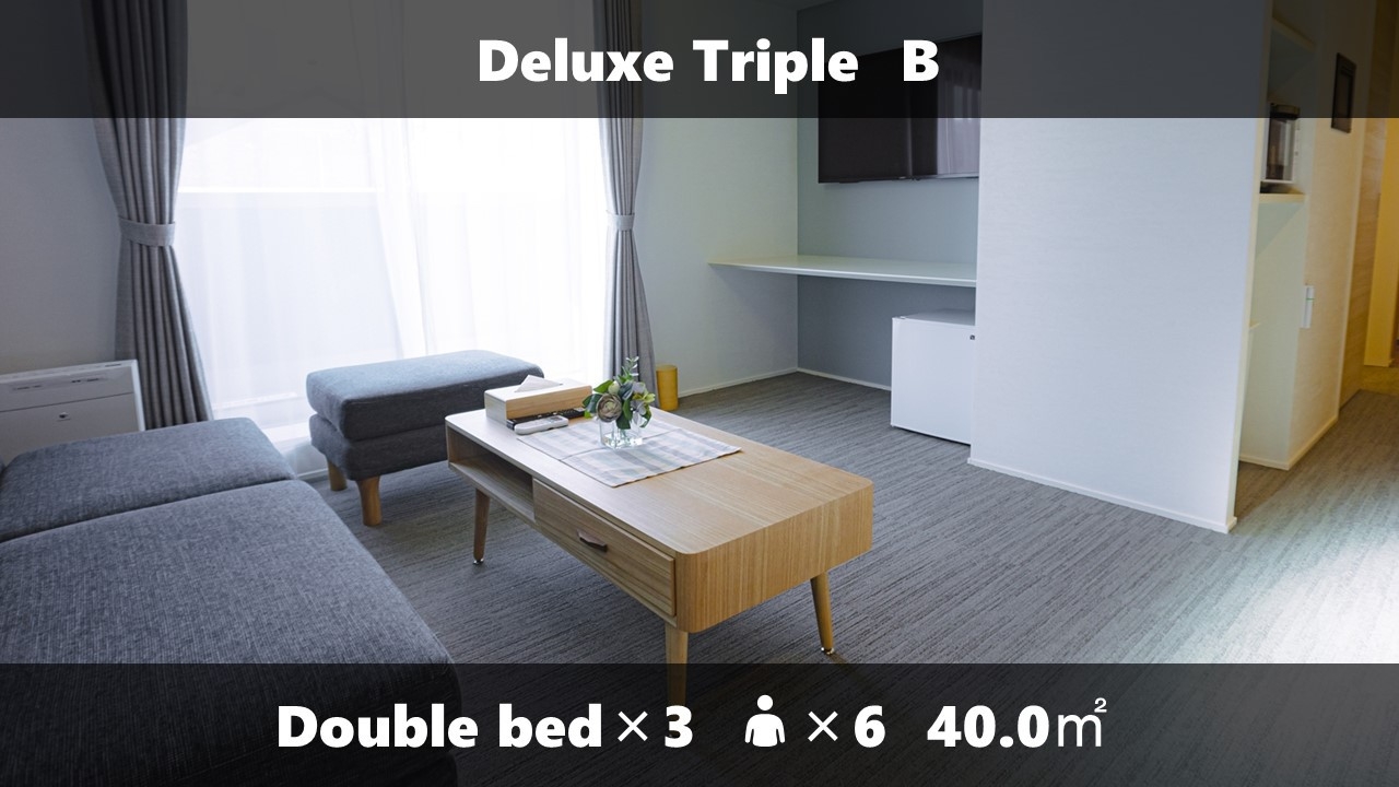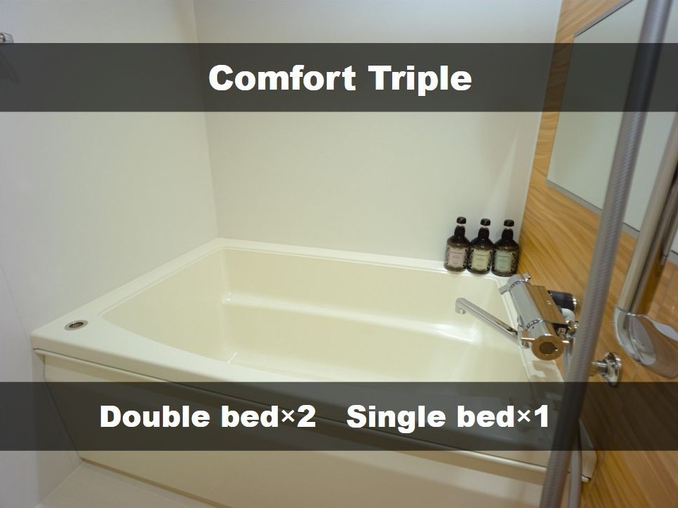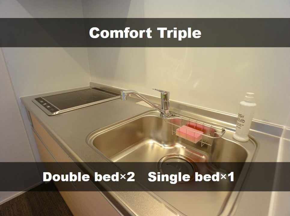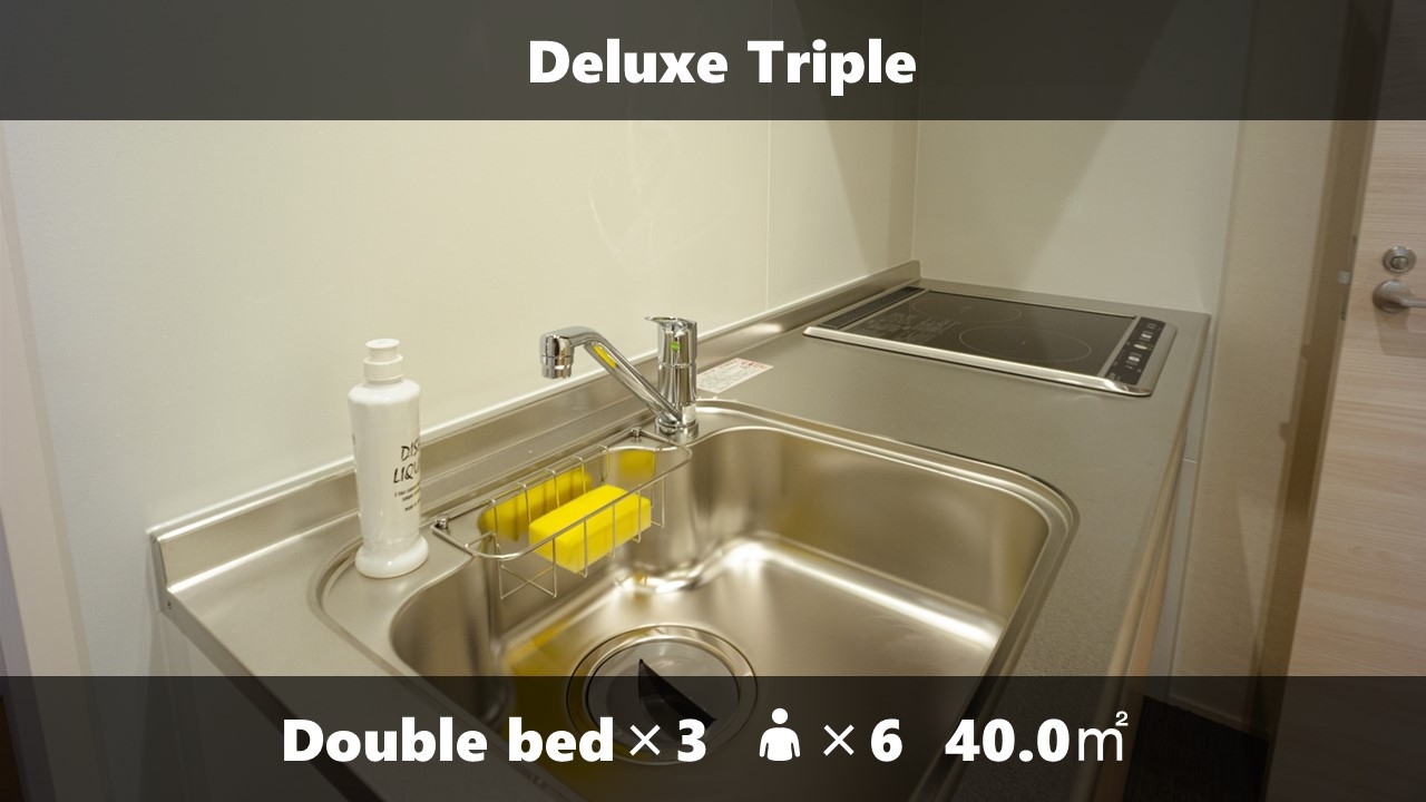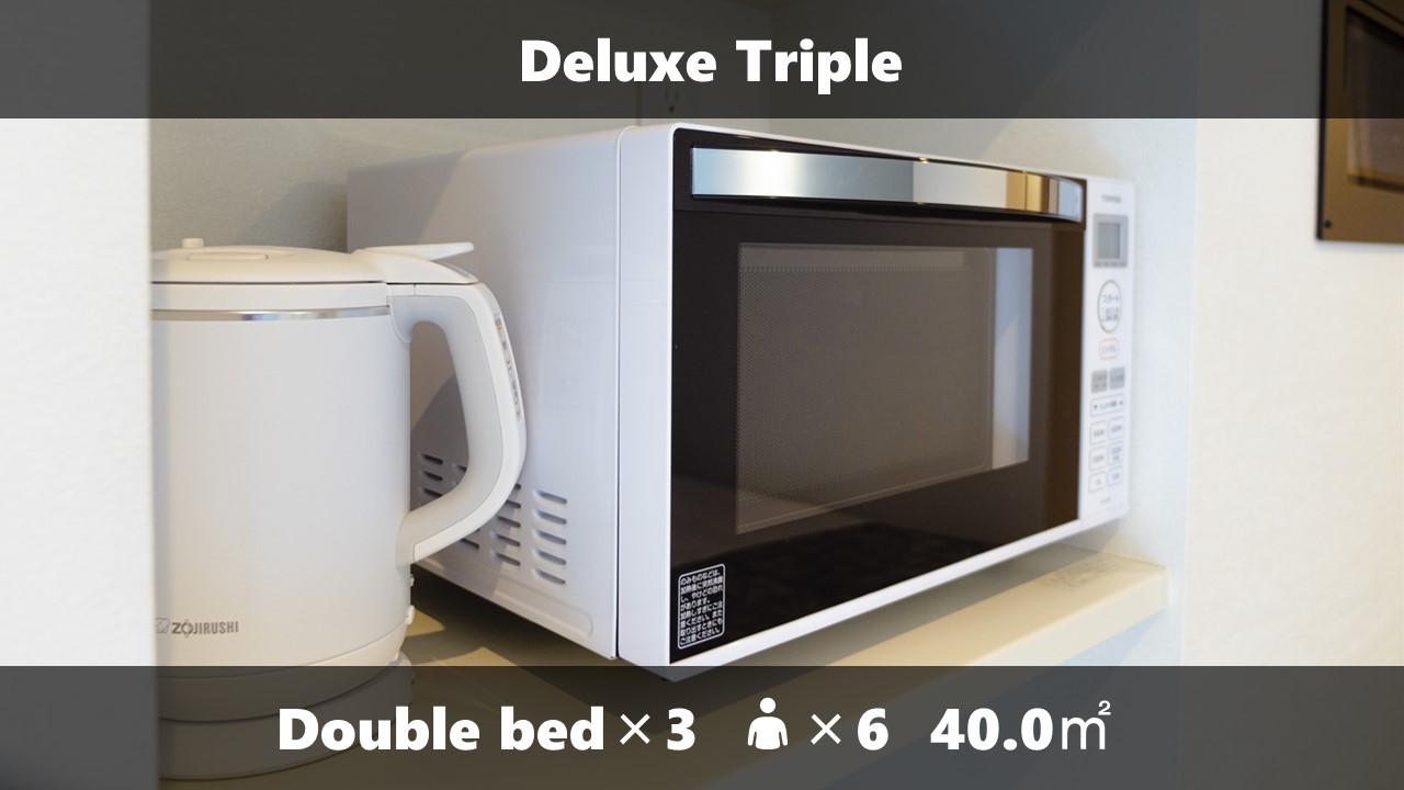 Wベッド3台 / 浴槽付きバス / 洗濯機 / テレビ / 冷蔵庫 / ケトル / 電子レンジ / ローテーブル / ソファー