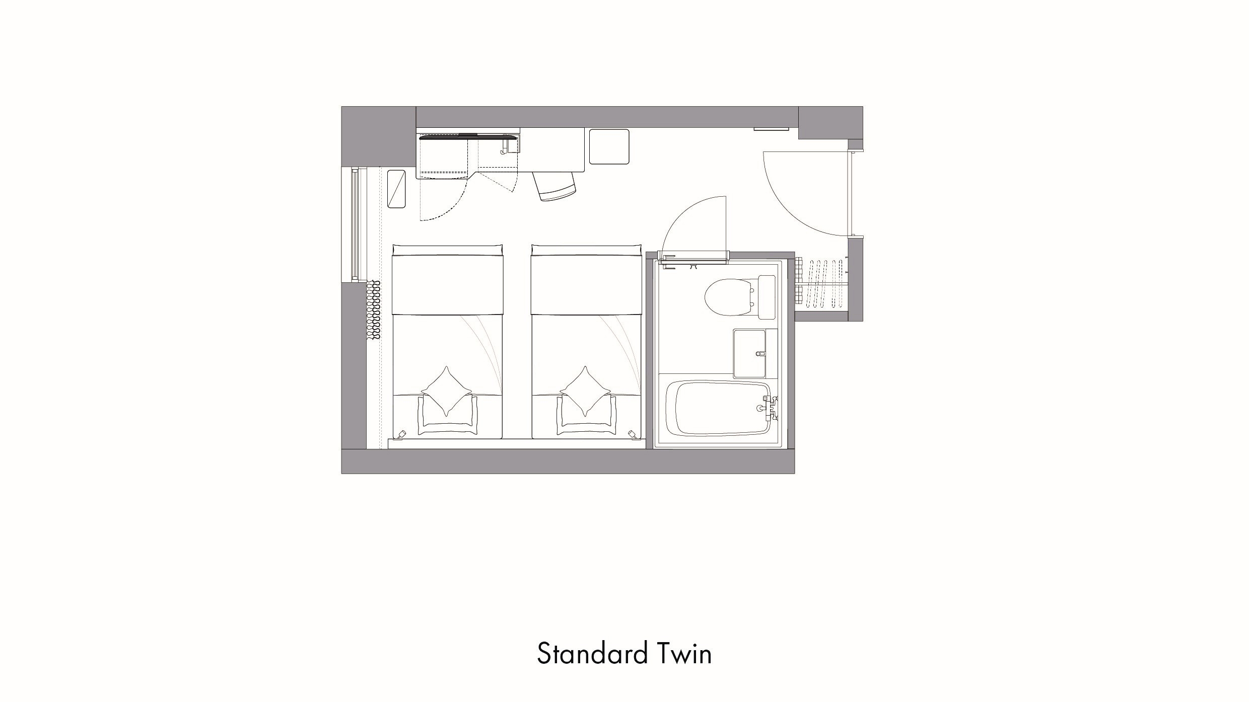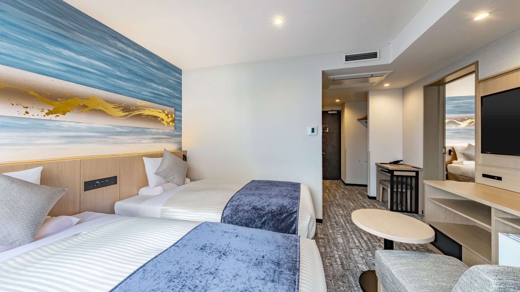 【2024年リニューアル】ベッド幅:110〜120cm×2台 広さ:17.8平米 スマートテレビ設置!