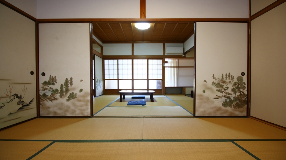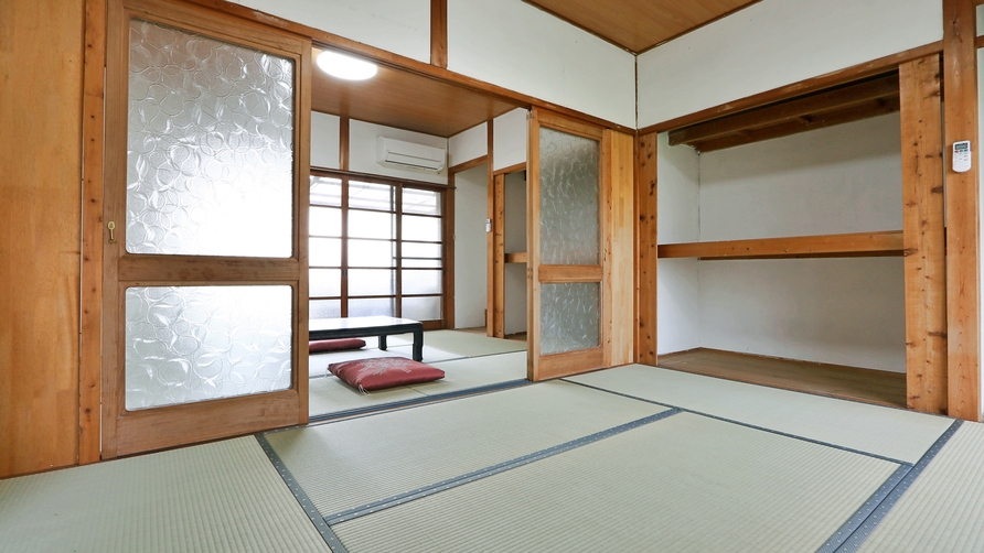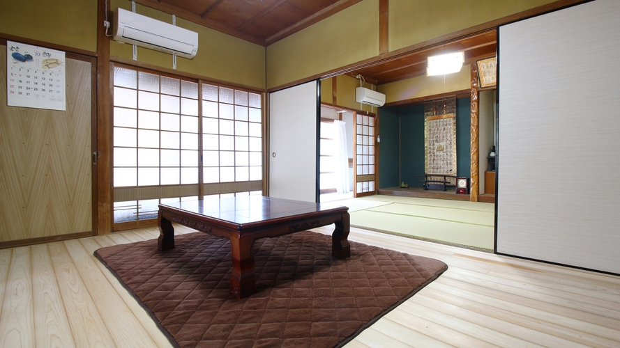 6人分布団。床の間付和室4畳半。15畳リビング、離れに露天風呂、