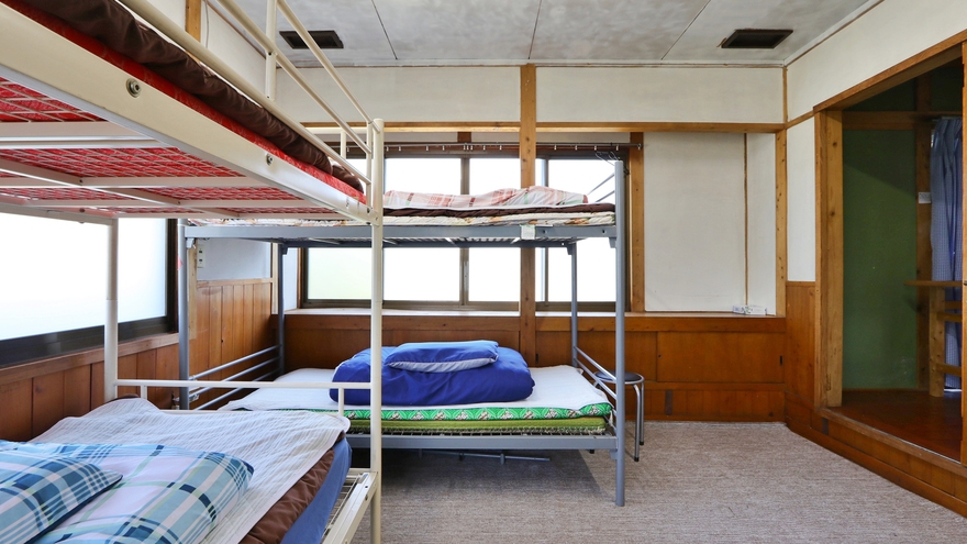 布団利用。風呂、トイレ、キッチン、リビング、薪ストーブ