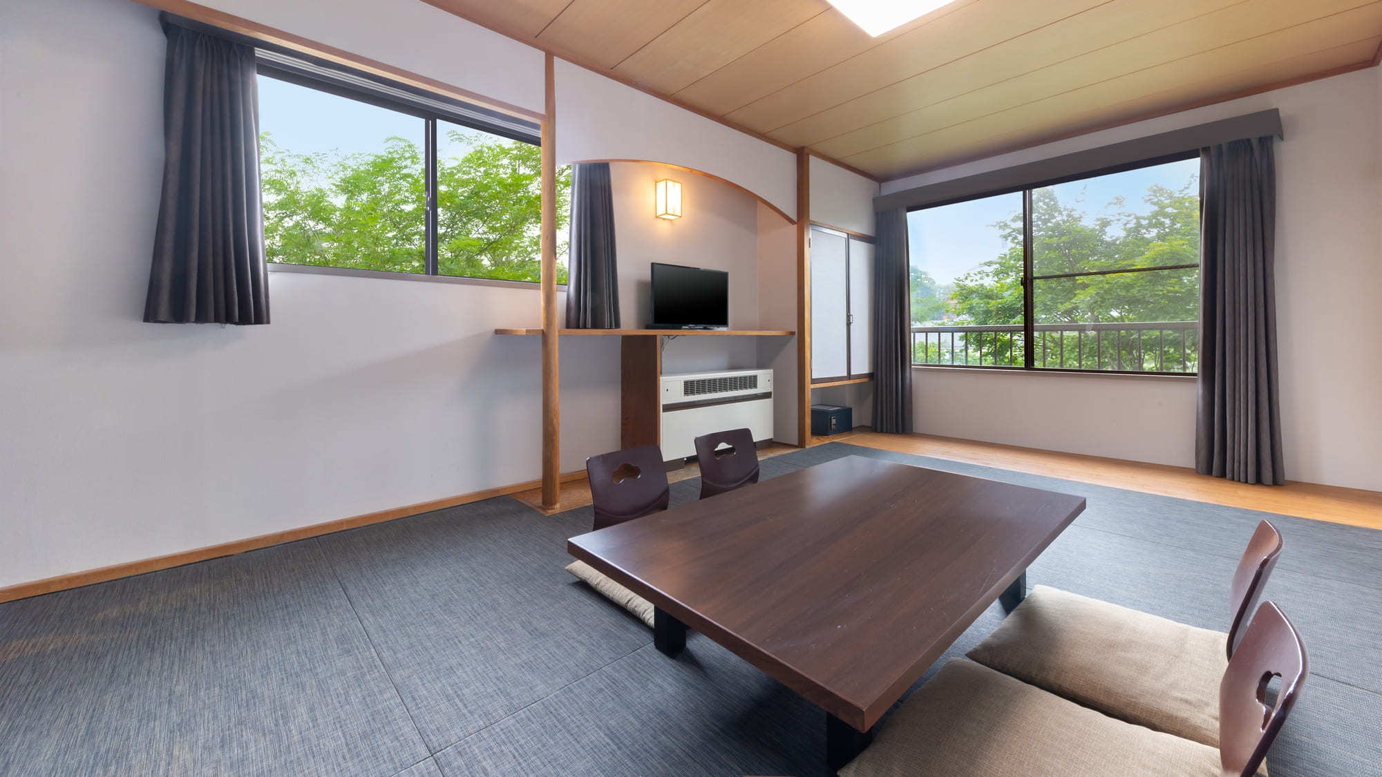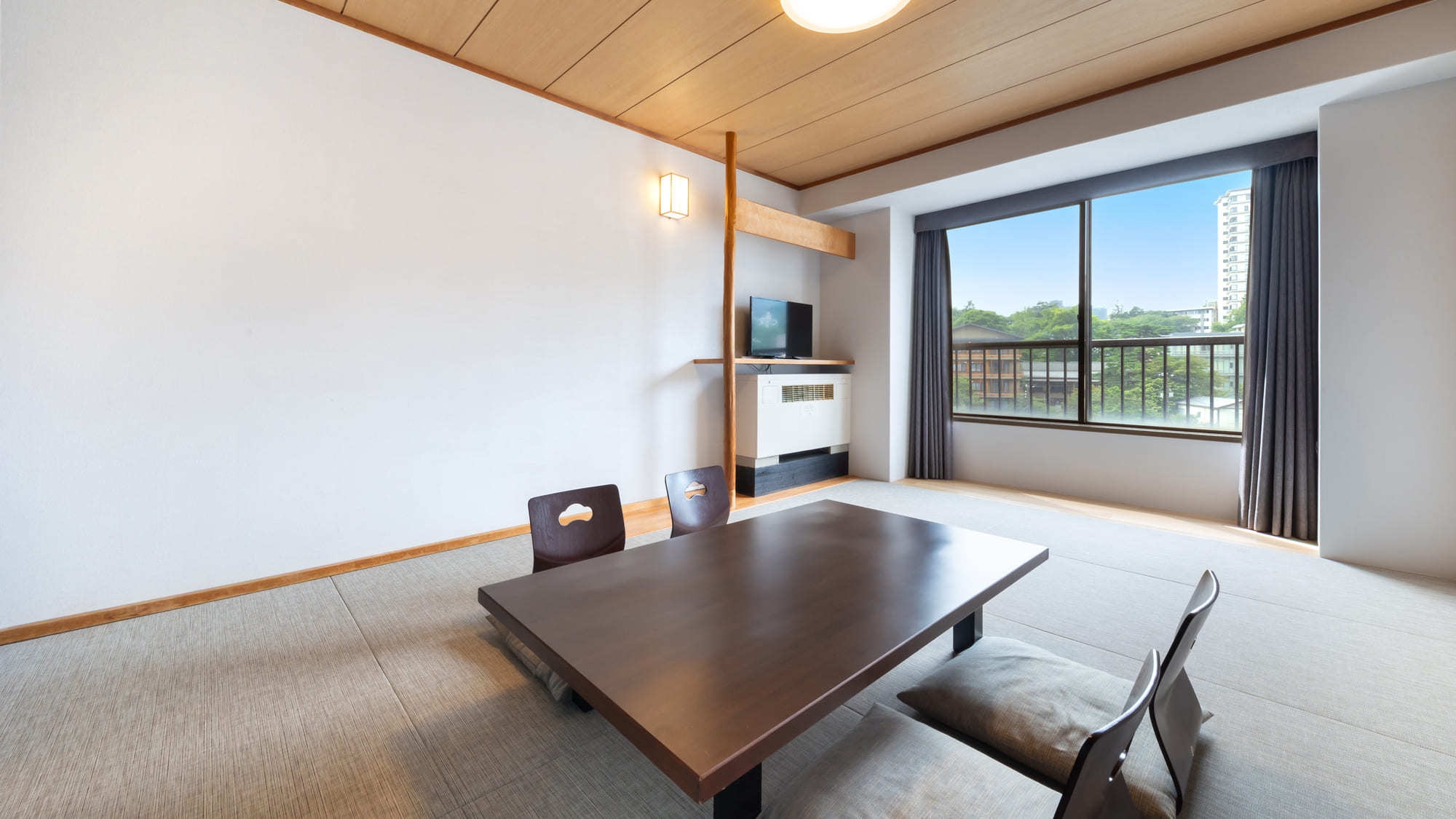 落ち着いた雰囲気の純和風のお部屋です。お部屋から草津の街並みがご覧いただけます。