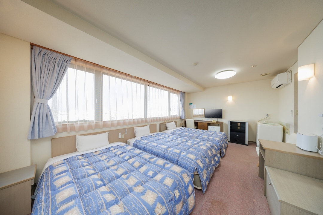 ワンルームマンションタイプのトリプルルーム。部屋の広さは当館一。※大人1名利用の場合の添い寝は出来かねます。