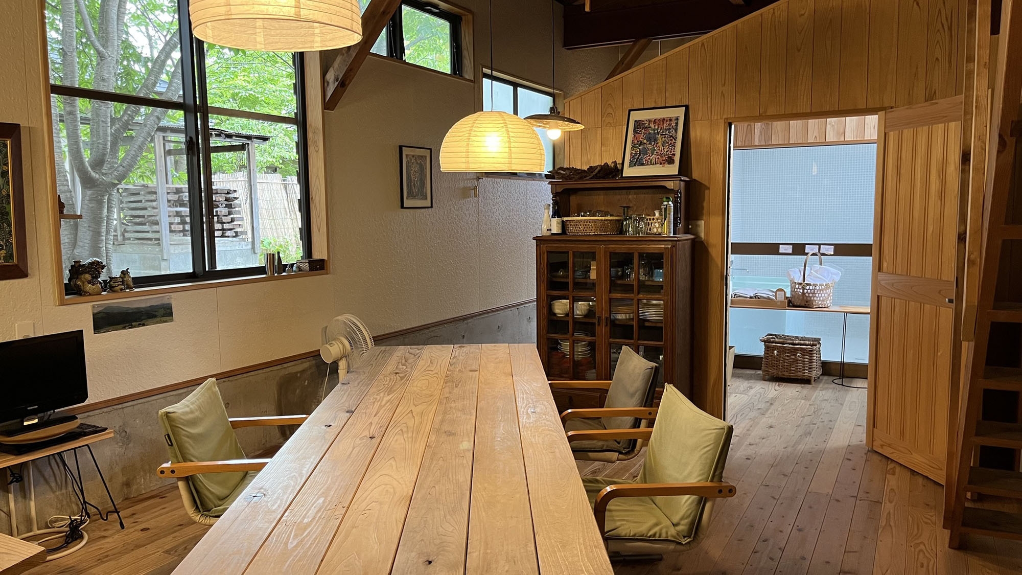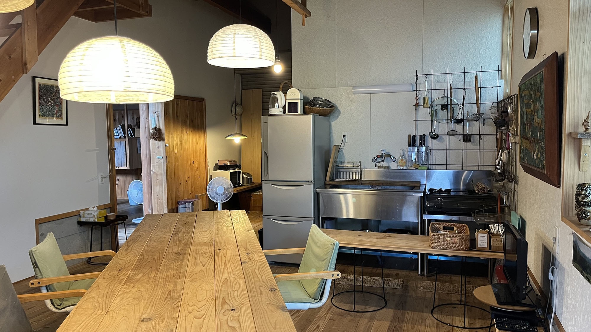 寝室2カ所とリビング、ダイニング、キッチン完備。浴槽付バスルーム他、シャワー室を備えています。※エアコンは設置していません(扇風機のみ)。冬は石油ストーブを使用