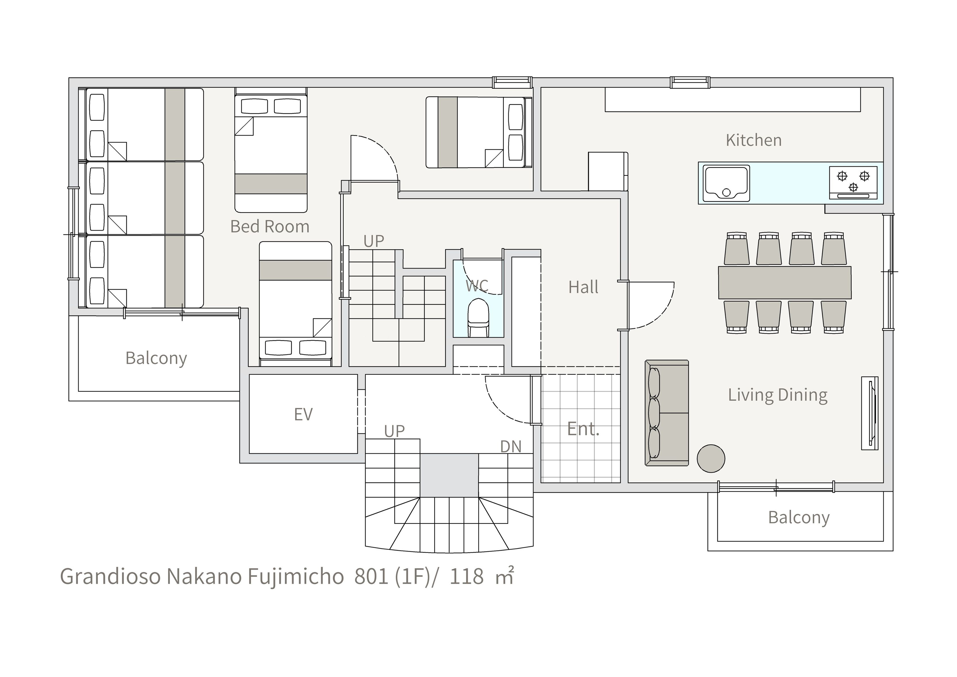 【最大14名】3LDK+メゾネット(120平米)/ベッド8台/新宿からすぐ/最寄駅7分/中野801