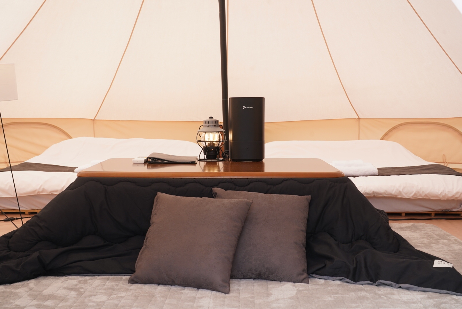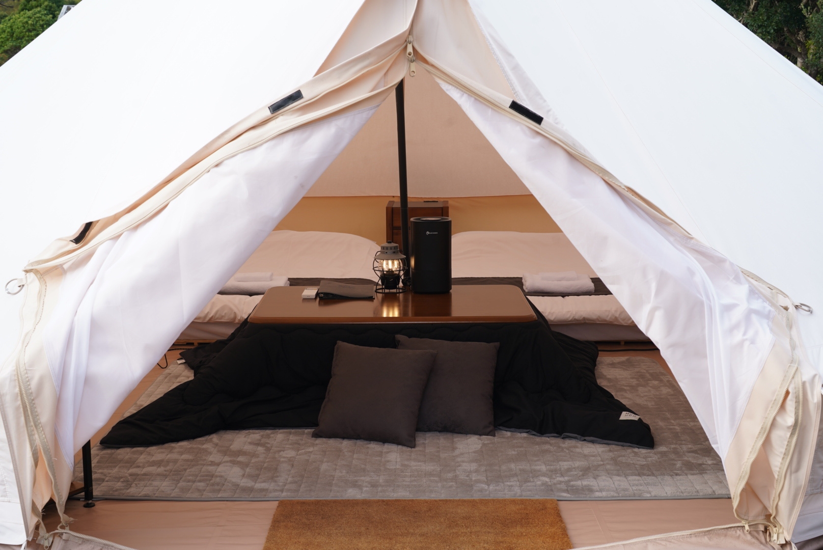ダブルベットが2台あるテント型のグランピングです。