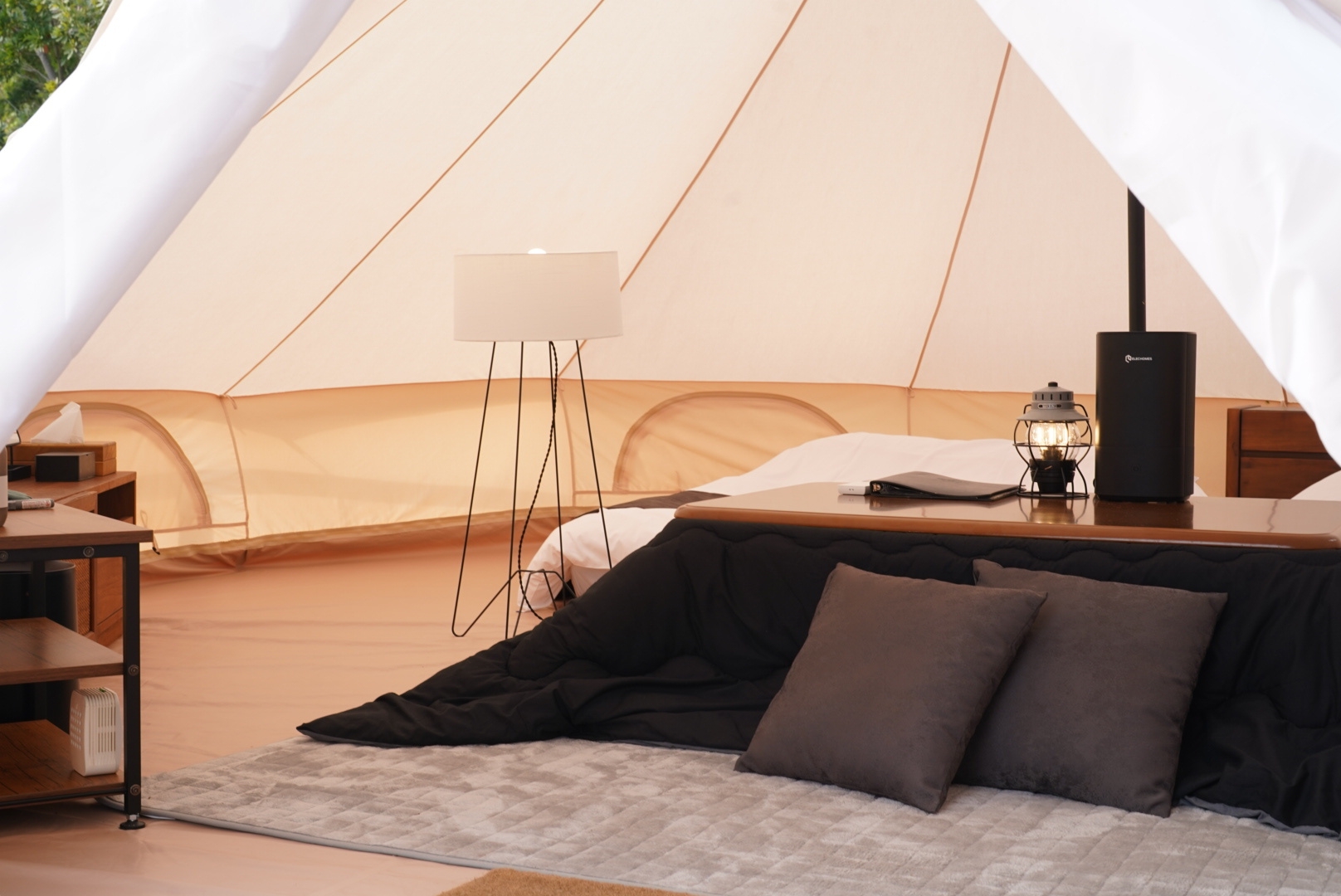 4人〜12人に適した、リビングスペーステントに泊まるグランピングです。