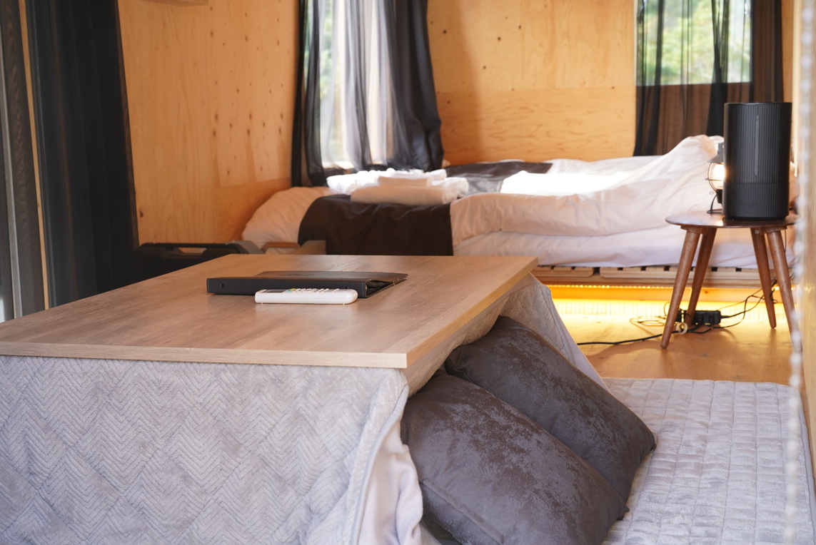 部屋設備・備品北欧をイメージした全室プライベートドッグラン付きのコテージです。ダブルベッドが1つ、ソファーベッドが4人分あり、最大6名様までお泊まりいただけます。