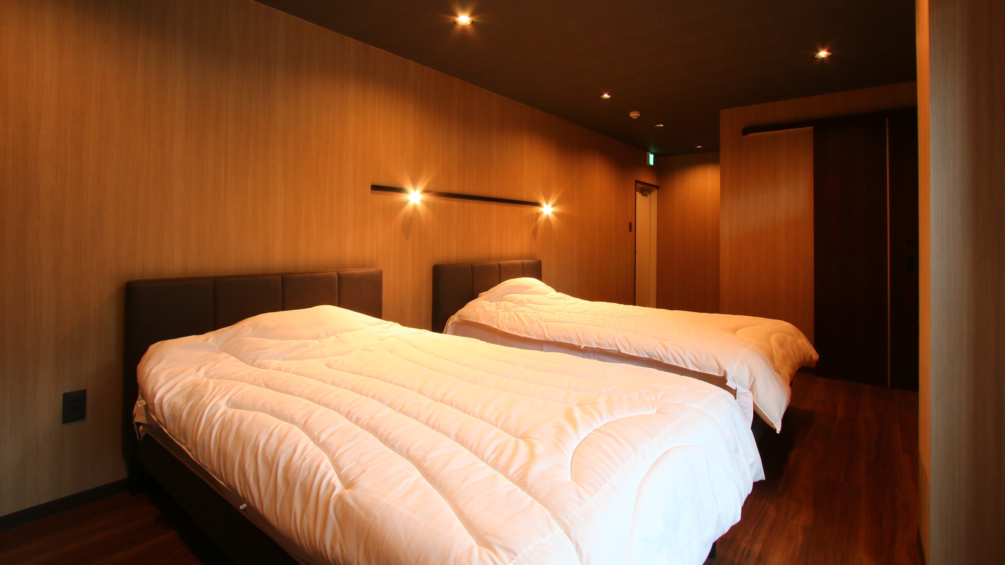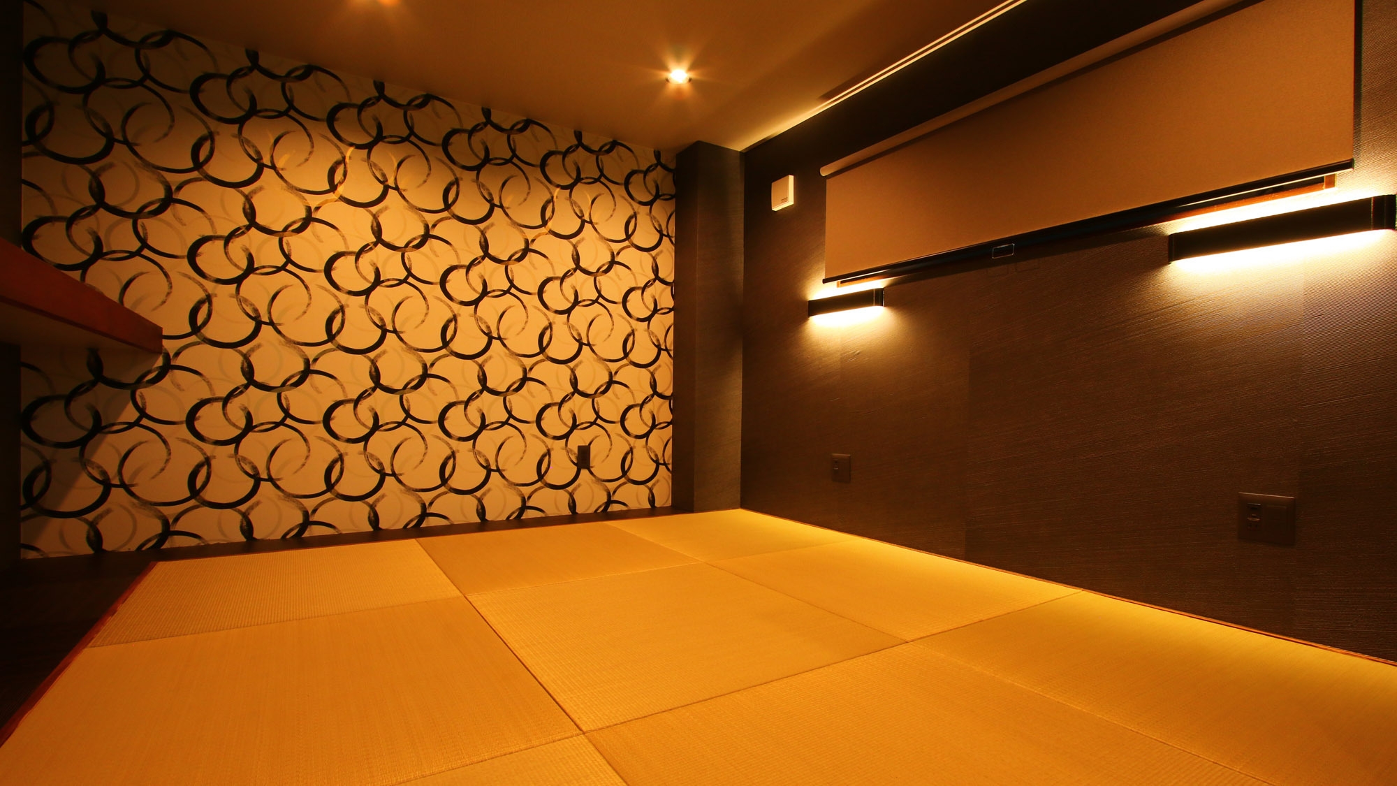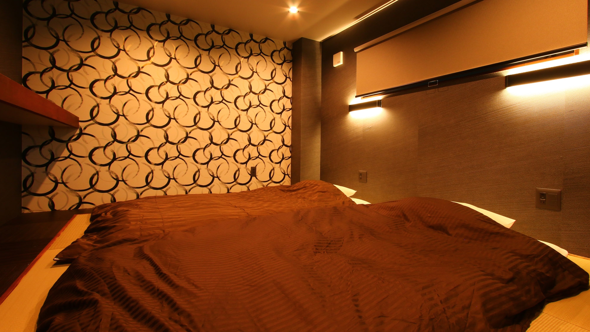 モダンなデザインの和室です。間接照明の電源とUSBポートが枕元にありますので、お布団に入ってからも快適に過ごせます。