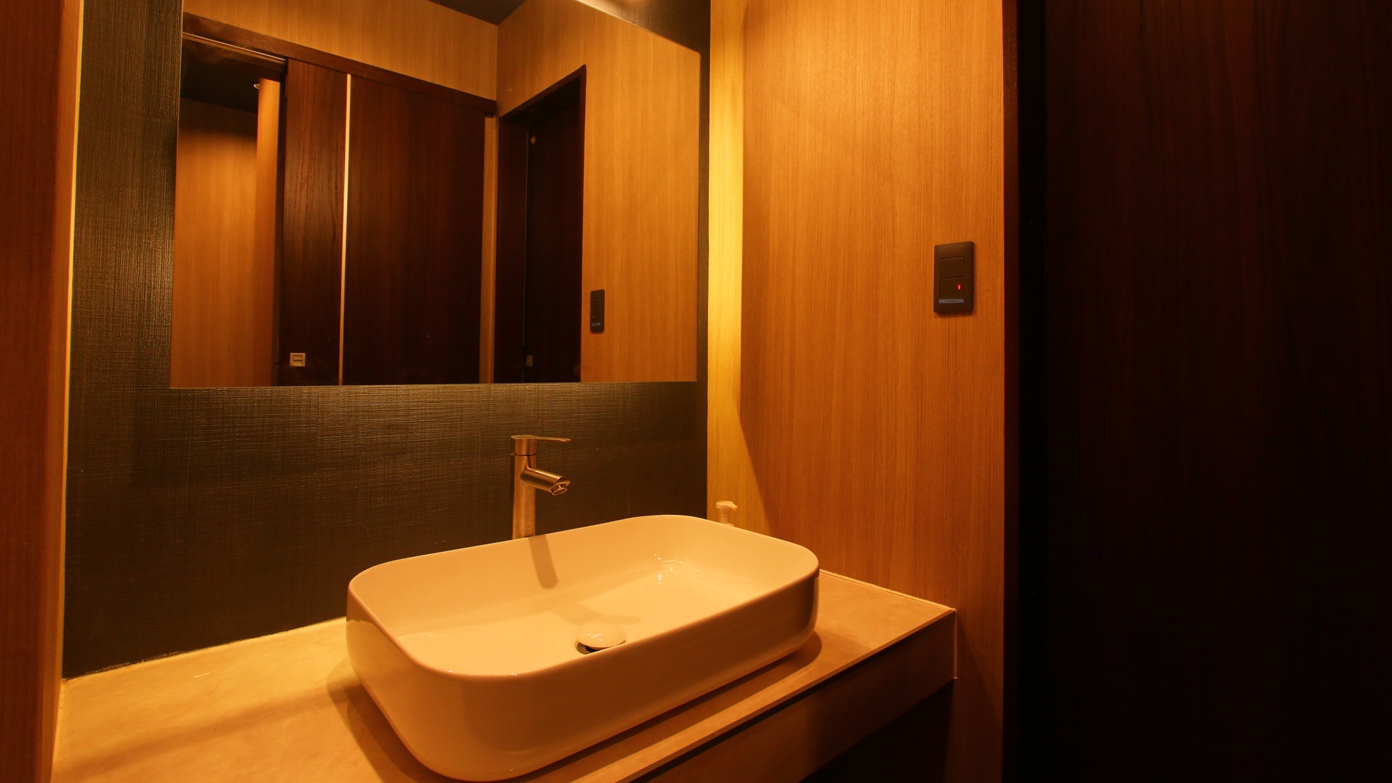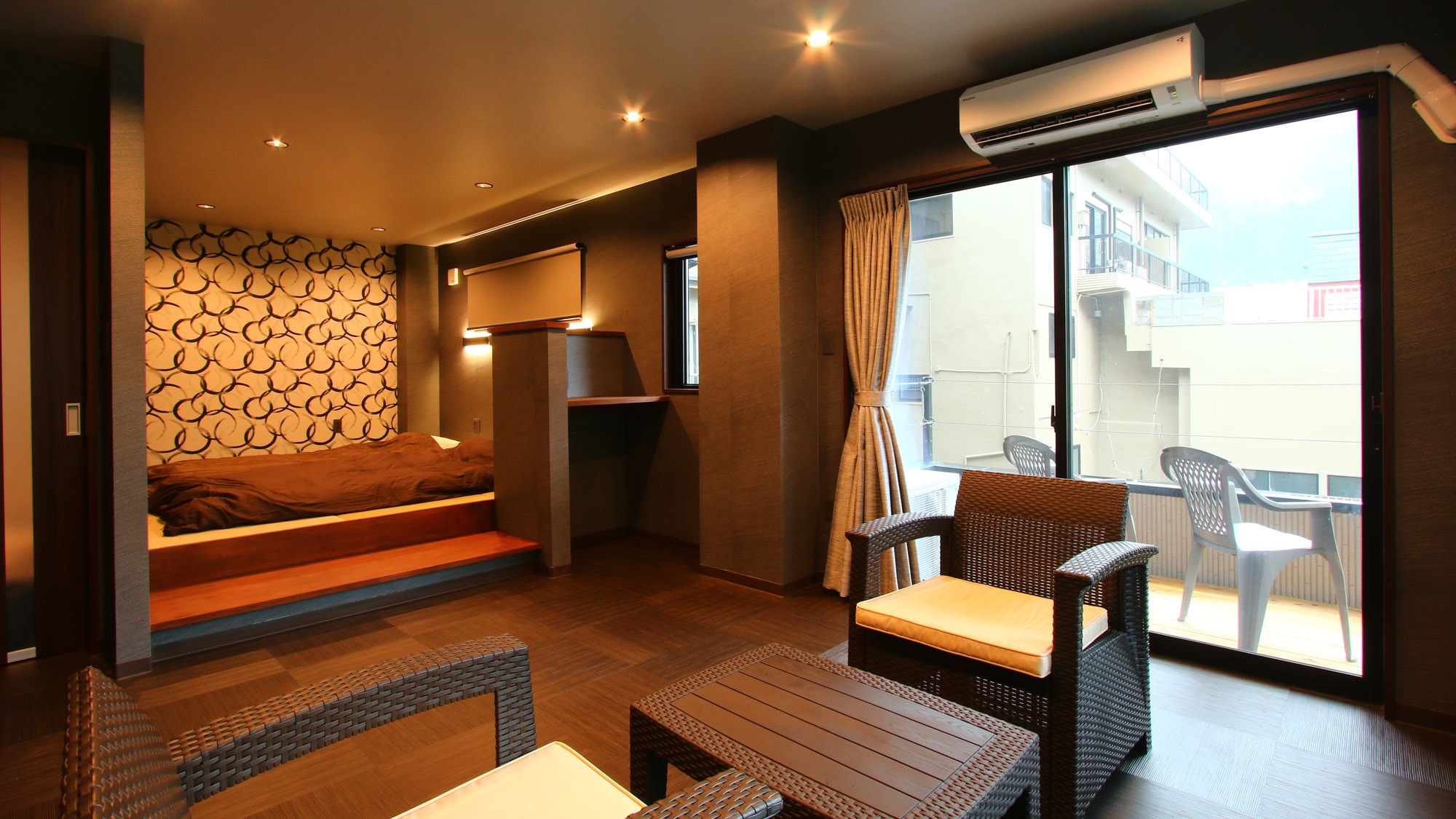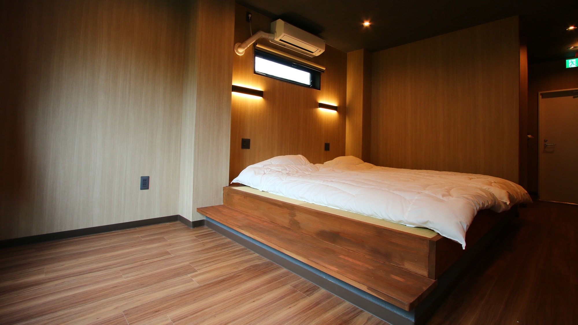 モダンなデザインの和室です。間接照明の電源とUSBポートが枕元にありますので、お布団に入ってからも快適に過ごせます。